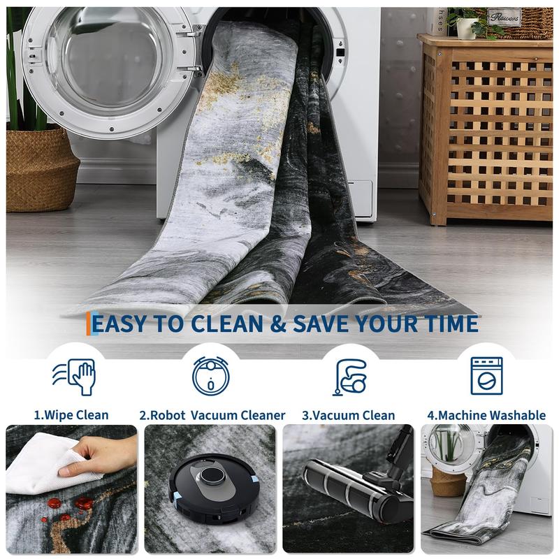 · 【Machine Washable Rugs & Easy Care】-This modern abstract area rug is crafted with low-pile design that won't trap dust or hair. The rug surface is water-resistant which allows for easy cleanup when beverages are accidentally spilled, as the liquid is less likely to seep in. Simply use a towel to promptly wipe away any spills.If you want to use washing machine, please turn on gentle cycle with cold water and not to add bleach. Use vacuum cleaner or broom for daily care, easy to clean and maintain
