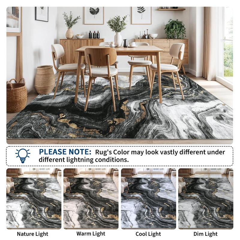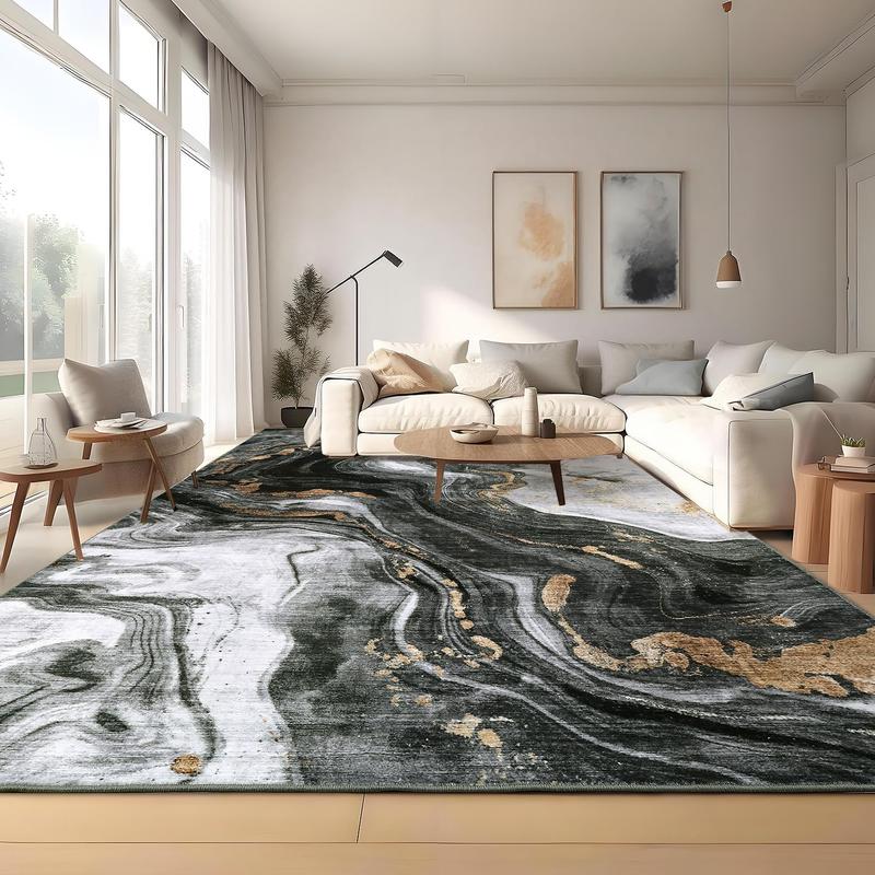 · 【Unique Design Abstract Rug】-Our area rug features chic wavy marble patterns and abstract print style,giving you a stunning visual experience. Classic stylish design is neutral and generous on rug appearance, which can be integrated into any existing home décor. Our abstract aesthetic rug is perfect as living room rug, bedroom rug, hallway rug, kitchen rug, dining room rug or home office rug.Brings a delicacy and timeless with a beautiful lived-in design to your home!