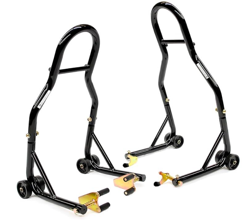 · Versatile Adjustability: The front and rear wheel lift combination includes adjustable plug options, making it compatible with most motorcycles and offering flexibility for various tire sizes