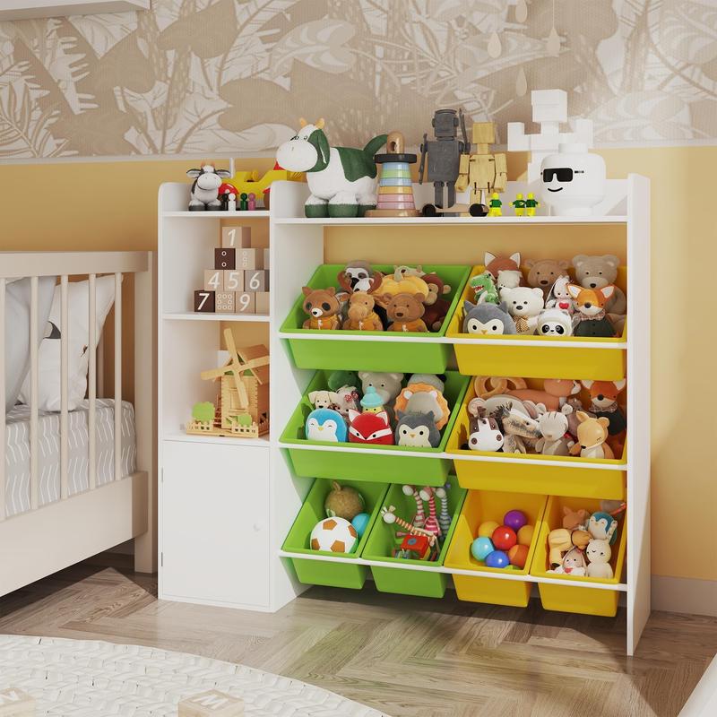 · Massive, Smart-Capacity Toys Storage OrganizerEliminate clutter for good. This unit offers an impressive storage capacity with 3 cubbies and 8 versatile bins. The smart layout of this kids toy storage organizer provides a dedicated spot for everything, from bulky toys to small craft supplies, maximizing your playroom storage efficiency.