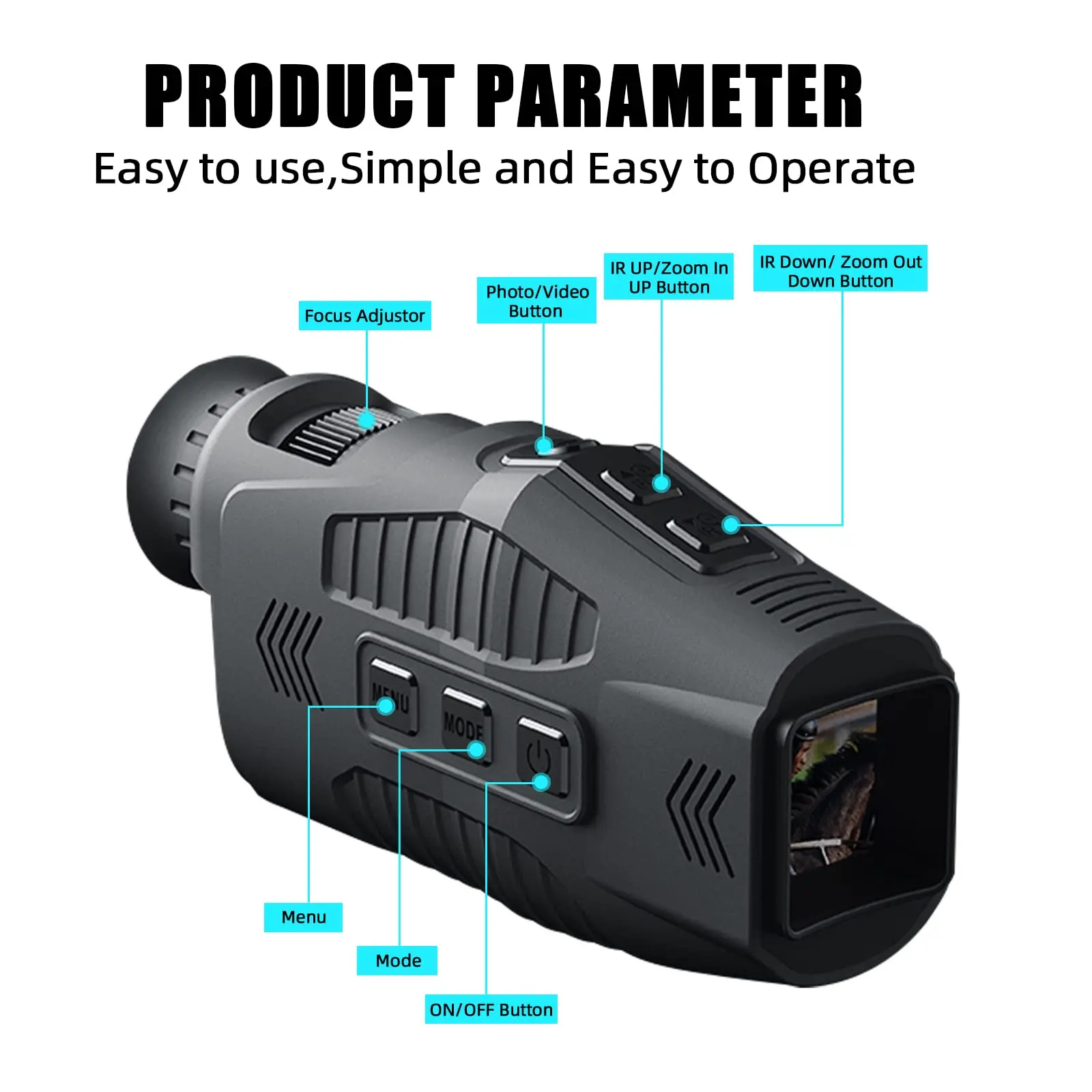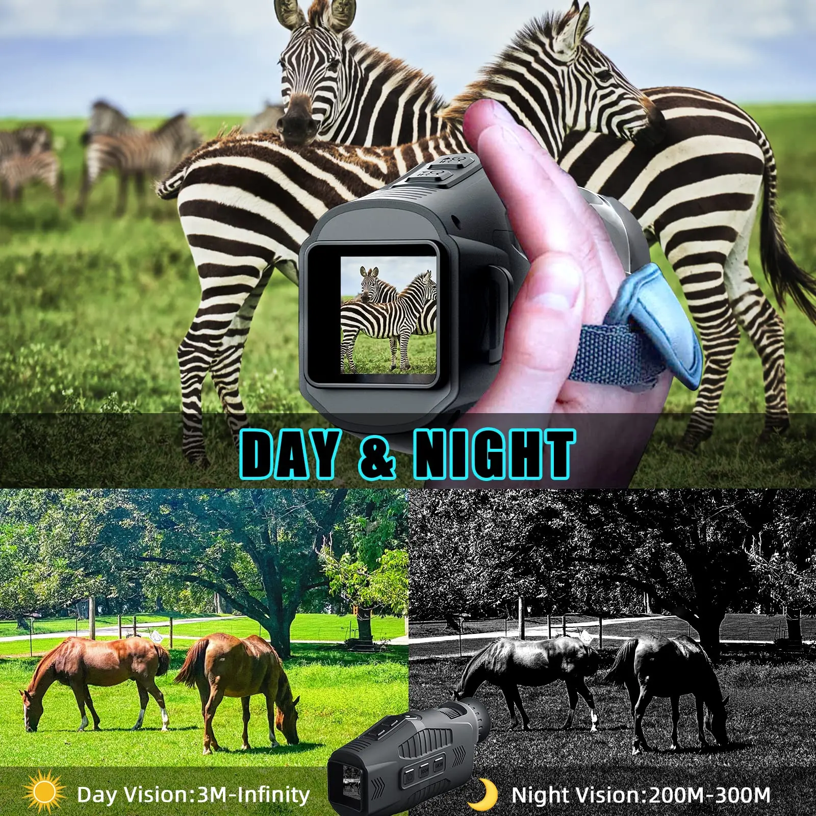 ·【Ergonomic design】Handheld digital night vision monoculars come with a buffer strap that fits comfortably in your hand to help record pictures or videos stably.