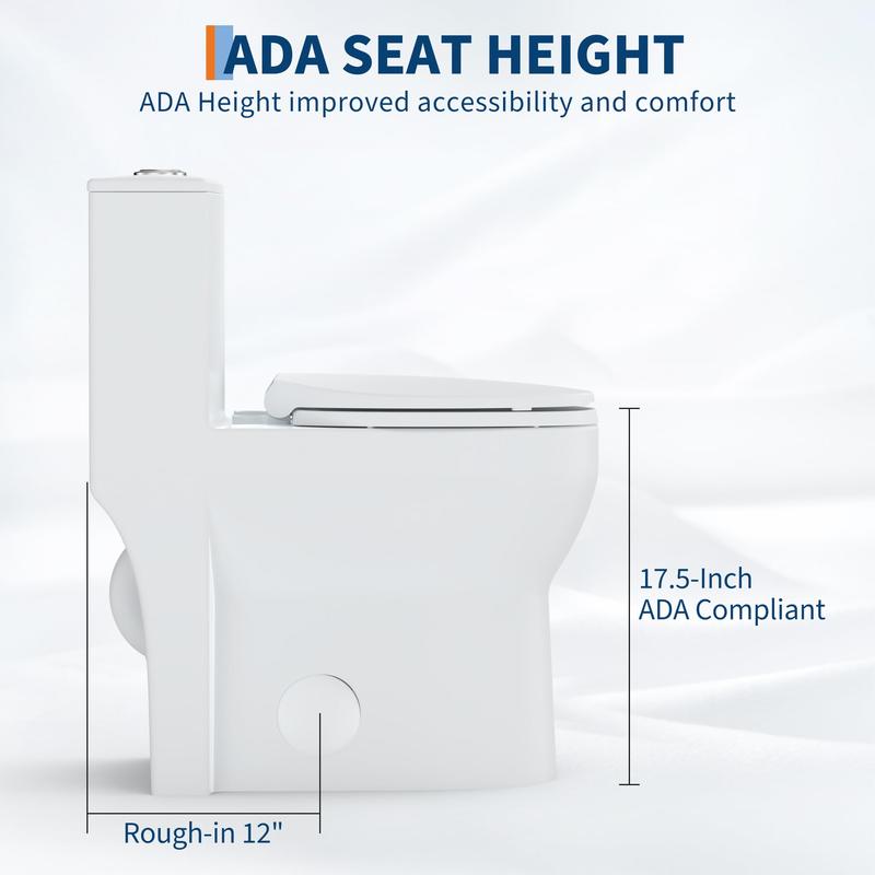 · ✅ 17-Inch ADA Comfort Height for Superior AccessibilityDesigned with a 17-inch seat height that meets ADA compliance standards, this toilet provides a chair-like seating position for effortless sitting and standing, offering enhanced comfort and accessibility for users of all ages and mobility levels.