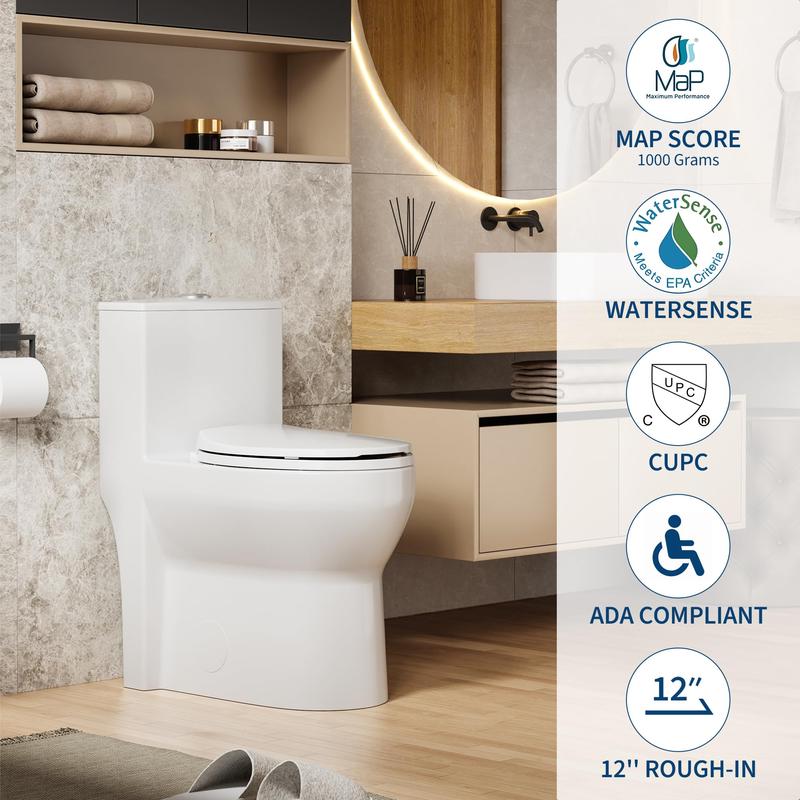 · ✅ Elegant One-Piece Design & Effortless CleaningThis toilet features a seamless one-piece construction that eliminates the dirt-hiding gap between the tank and bowl for a sleek, modern look and dramatically easier cleaning. Combined with a smooth, high-gloss ceramic glaze, it resists stains and simplifies bathroom maintenance.