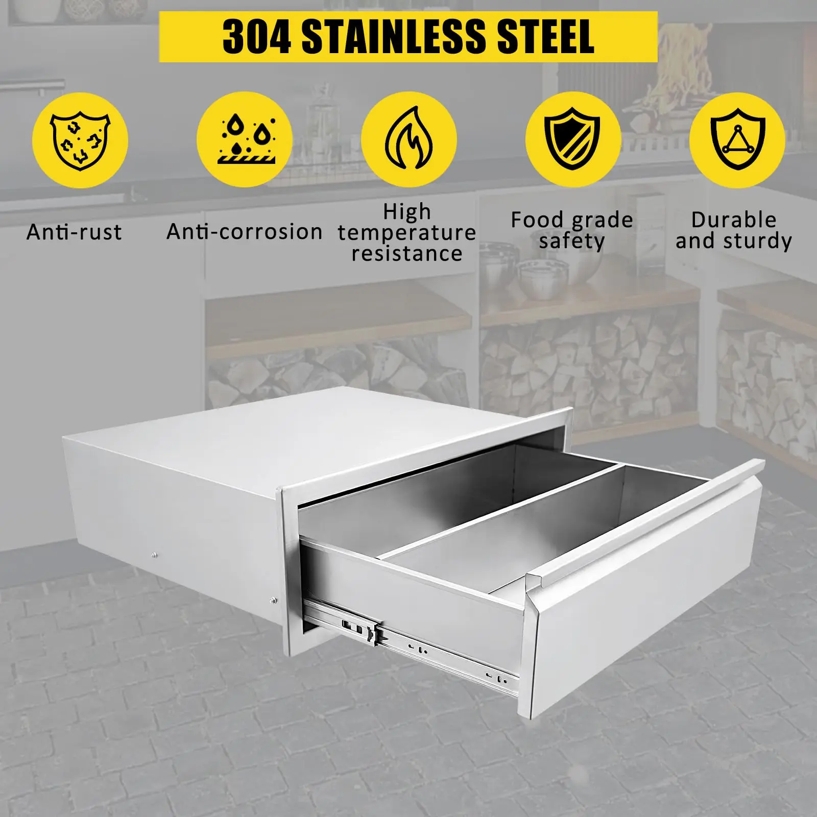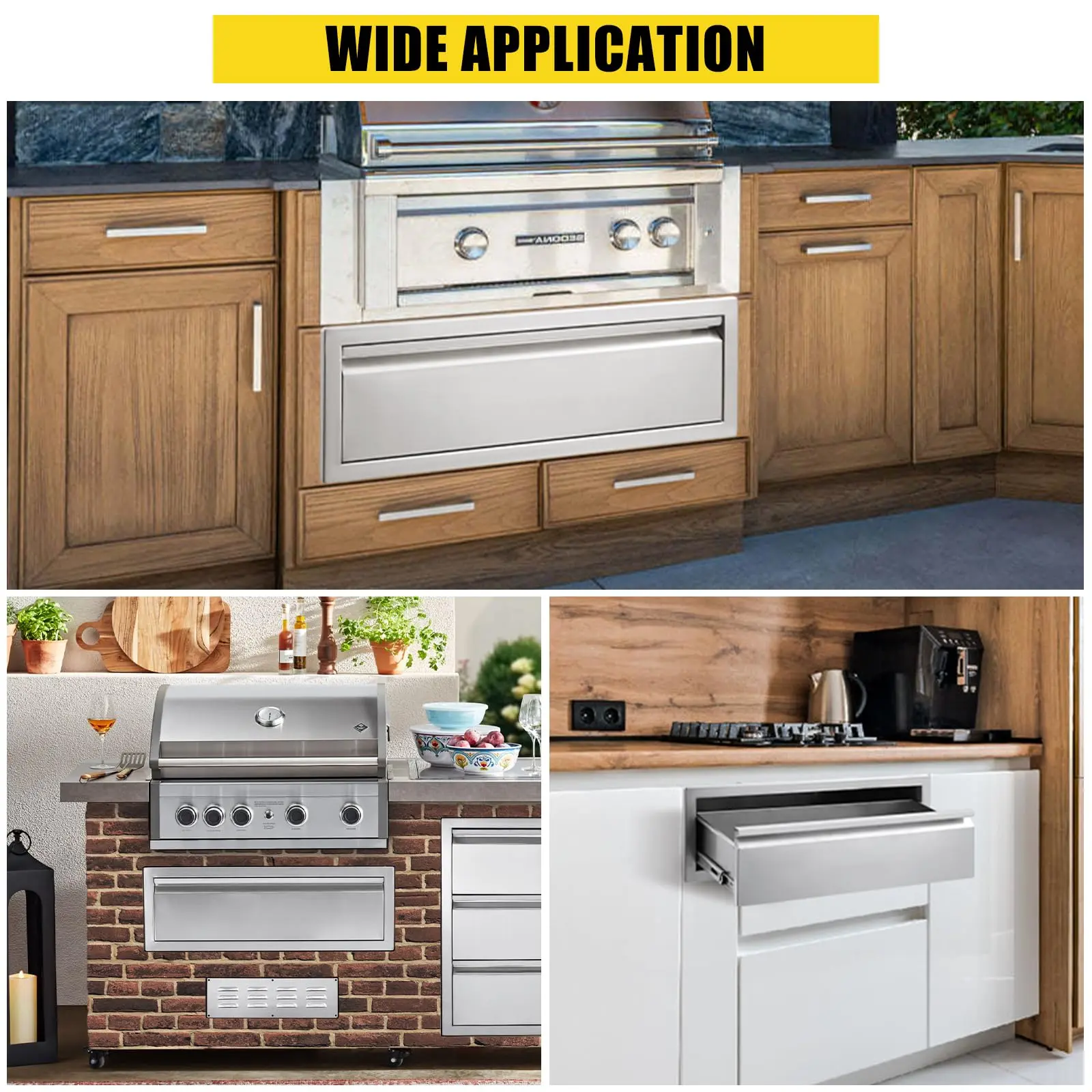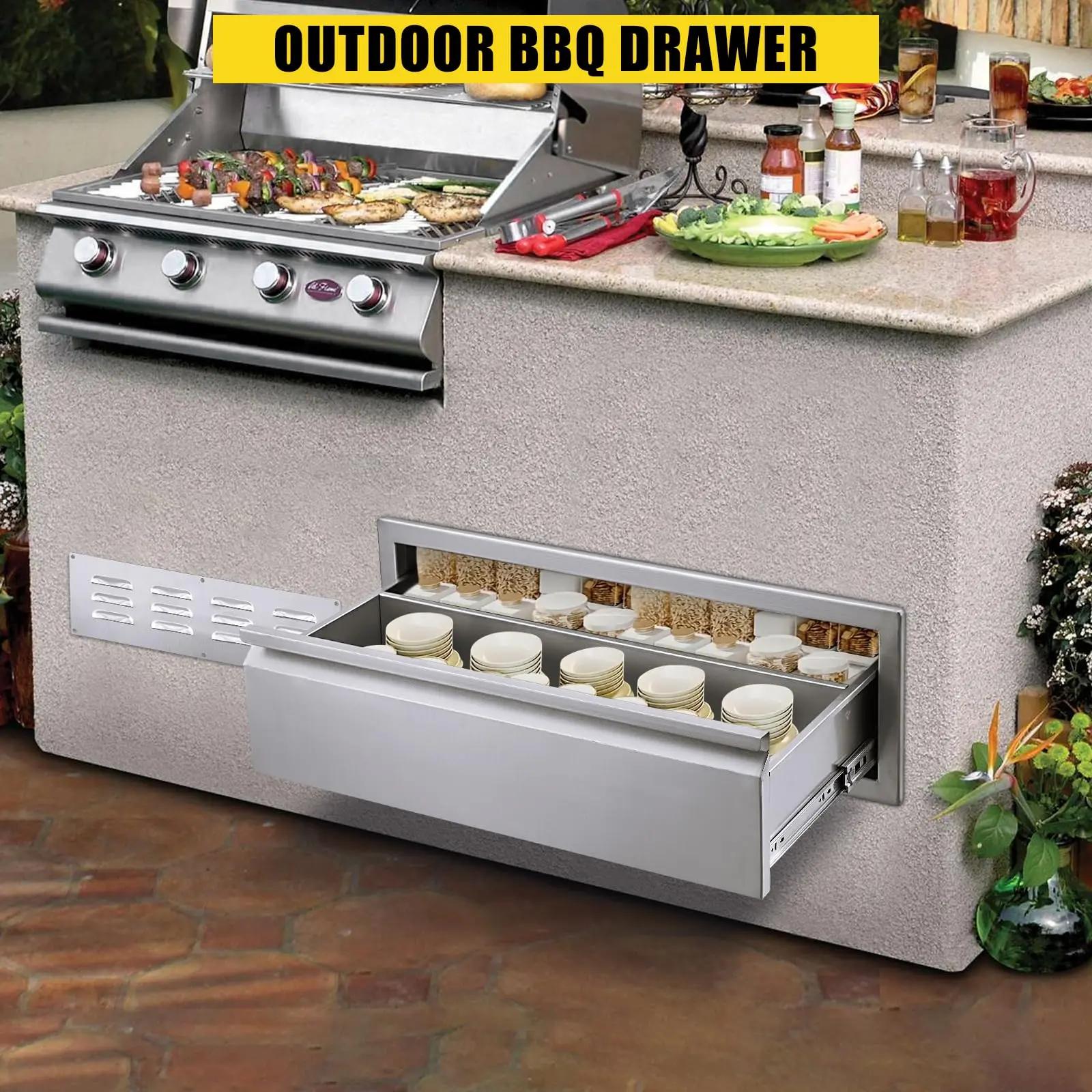 · 1. **Premium Construction**: The GARVEE Outdoor Kitchen Drawers are crafted from high-quality stainless steel, ensuring durability and resistance to rust and corrosion. Perfect for any outdoor kitchen island or patio grill station, these drawers are built to withstand high temperatures and harsh weather conditions.