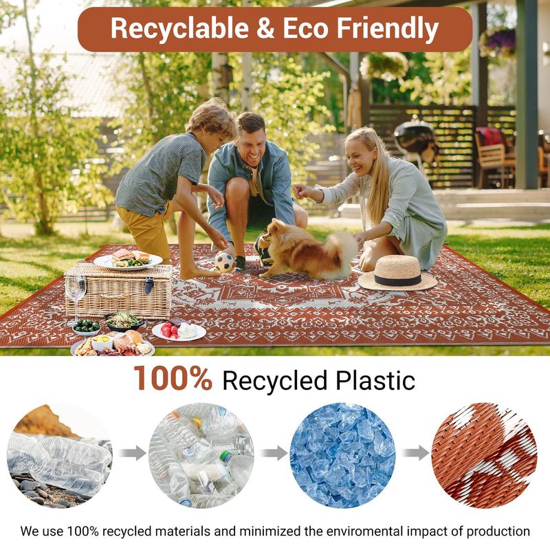 · Easy to Clean & Quick Dry: This waterproof, stain-resistant outdoor rug is a breeze to maintain—just rinse with water or wipe with a damp cloth. Breathable material dries fast, making it ideal for families, pets, and outdoor fun