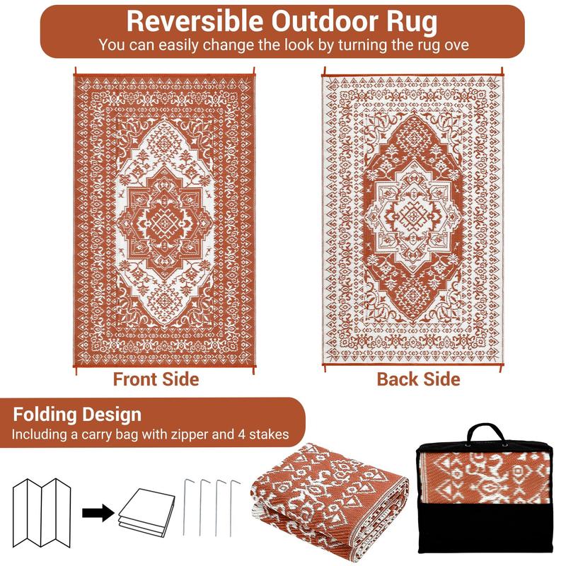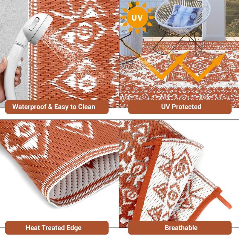 · Reversible & Versatile: Enjoy two looks in one with the reversible plastic straw rug. Simply flip it for a fresh decor update. Ideal as an outdoor mat for patio, camping rug for RV trips, or a waterproof outdoor rug for picnics, beaches, and more