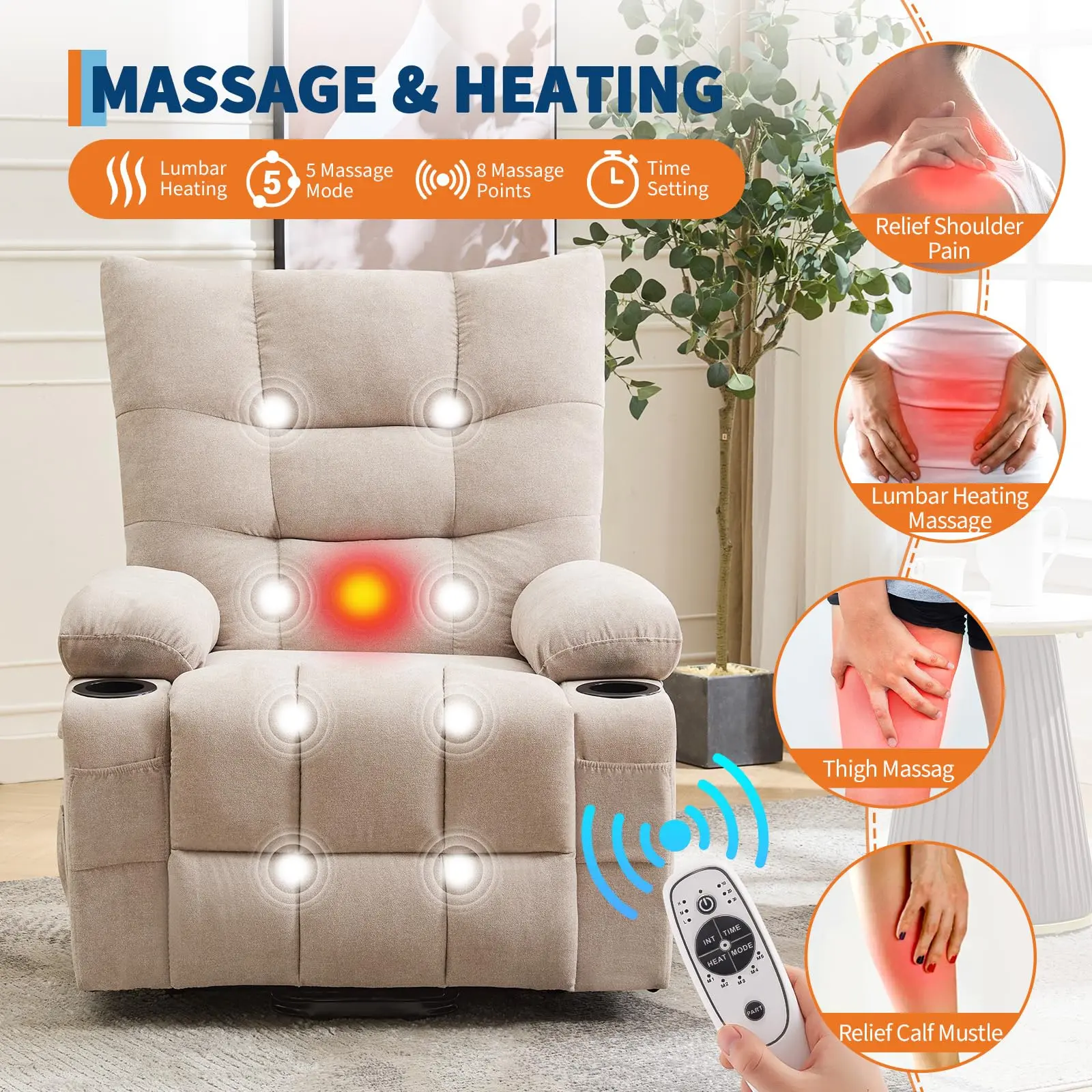 · Full-Body Massage & Lumbar Heat: Enjoy customizable eight-point vibration massage and adjustable lumbar heating for daily relief from back and leg pain, tension, and improved blood circulation.