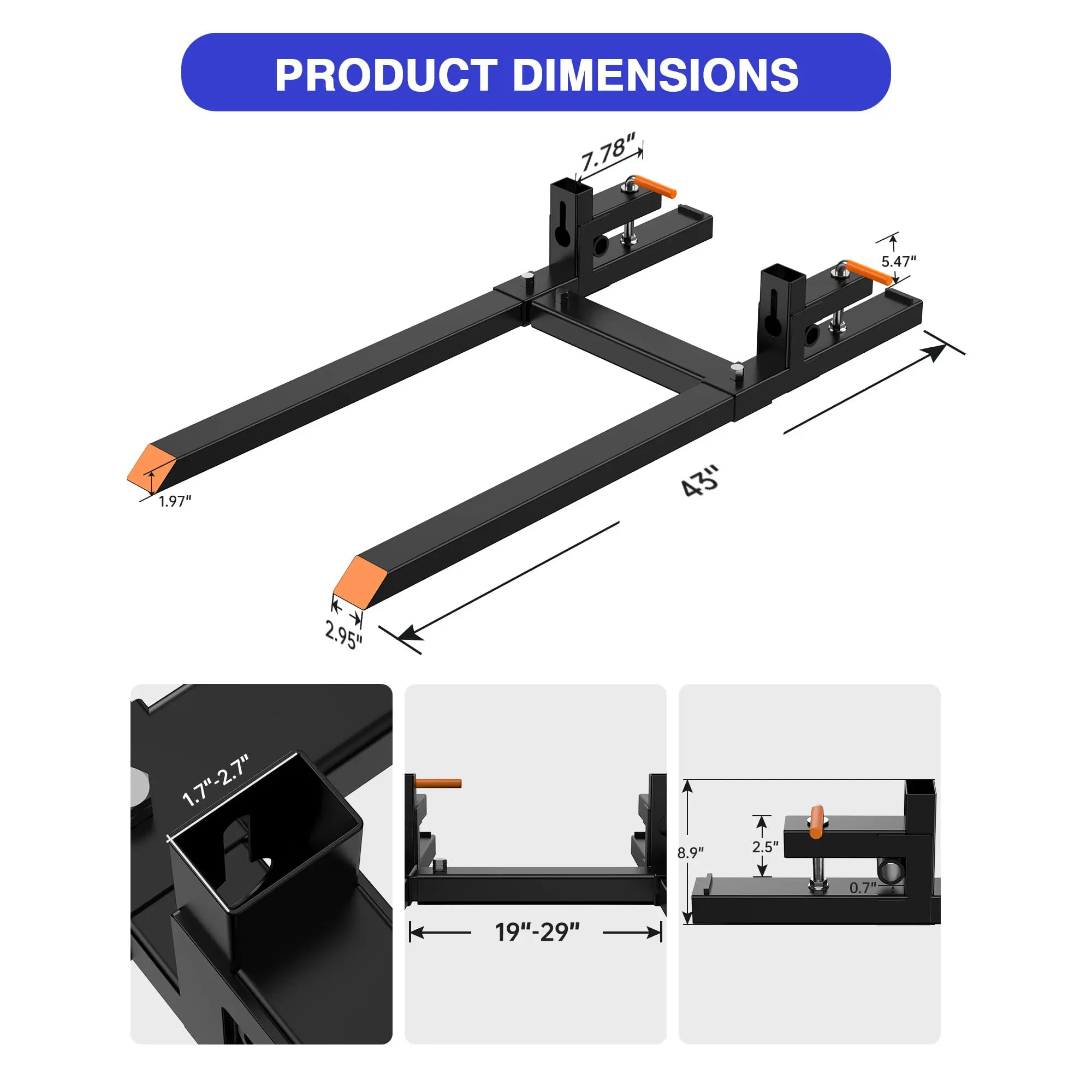 · Versatile Applications: Ideal for farming, construction, and landscaping, these clamp-on pallet forks enable you to efficiently transport pallets, hay bales, logs, and more with ease, transforming your equipment into a multi-tasking powerhouse