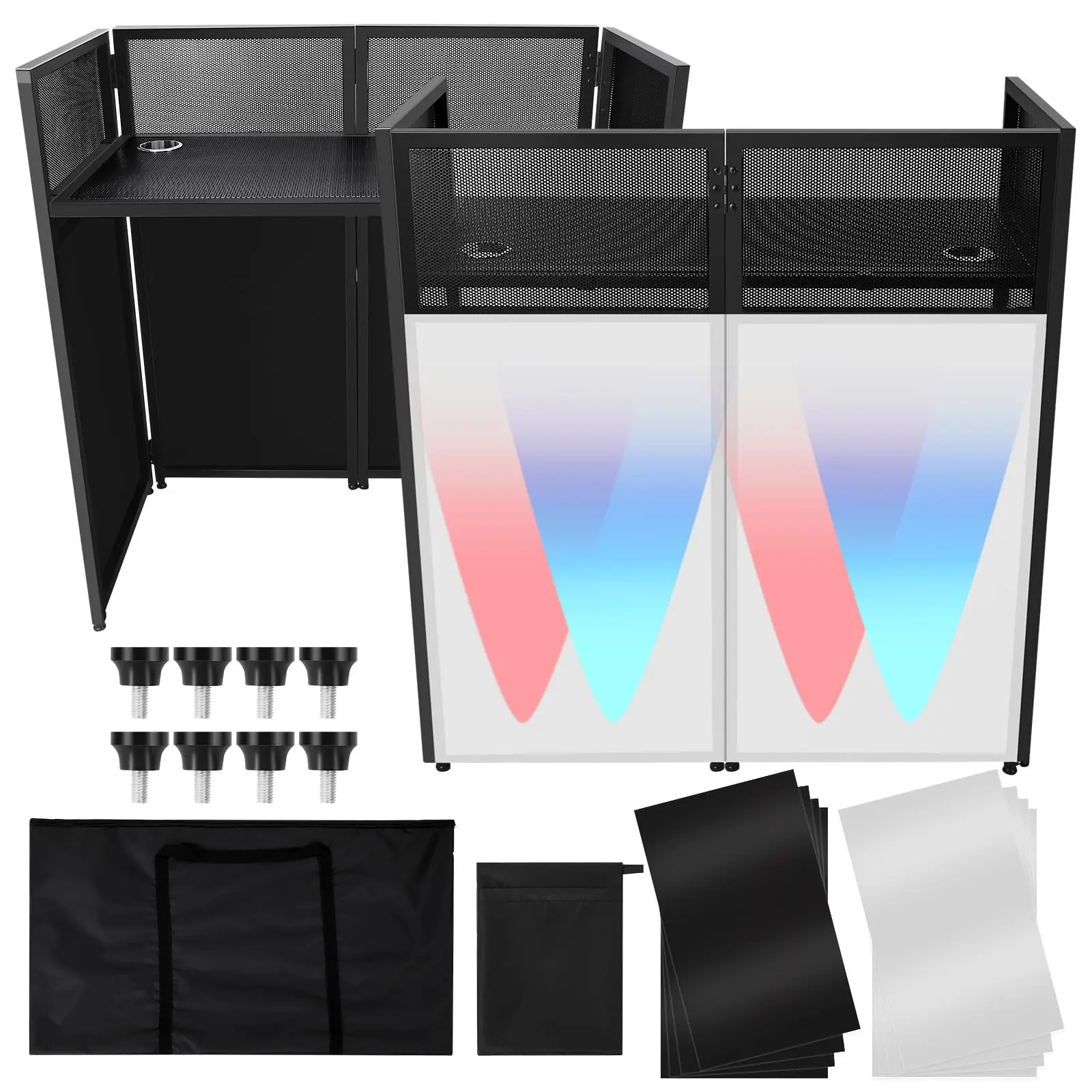 · 【Easy Foldable and Disassemble】The Portable DJ Facade Booth can be almost completely folded flat, making it easier to carry. It consists of one vertical panel and one desktop board, which can be quickly installed and removed in just a few minutes. Get a handbag to help you carry and store the DJ event storefront.