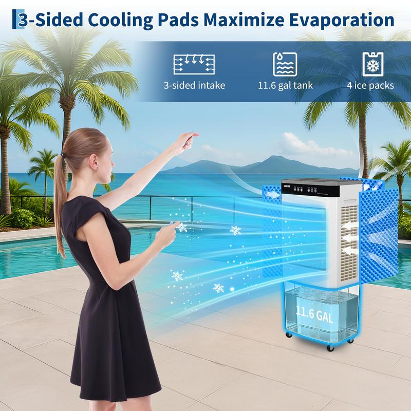 · 【11.6 Gal Large Tank, Fewer Refills】Large 11.6 gal water tank supports longer cooling sessions with fewer refills—great for extended use in living rooms, workshops, garages, and busy family spaces.