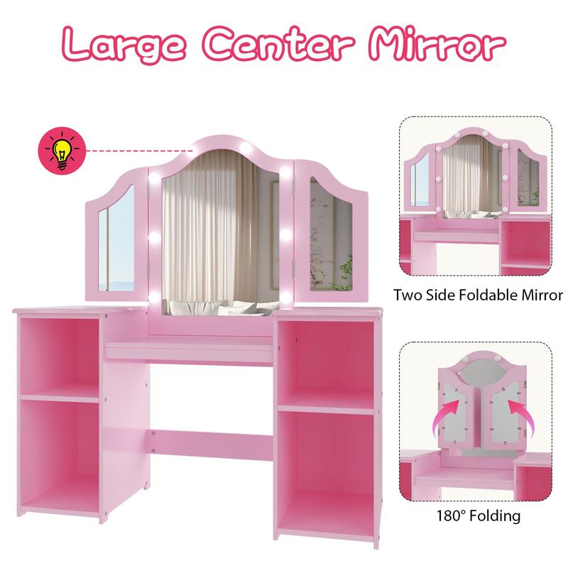 · Detachable Tri-folding Mirror: Easy conversion between vanity and desk