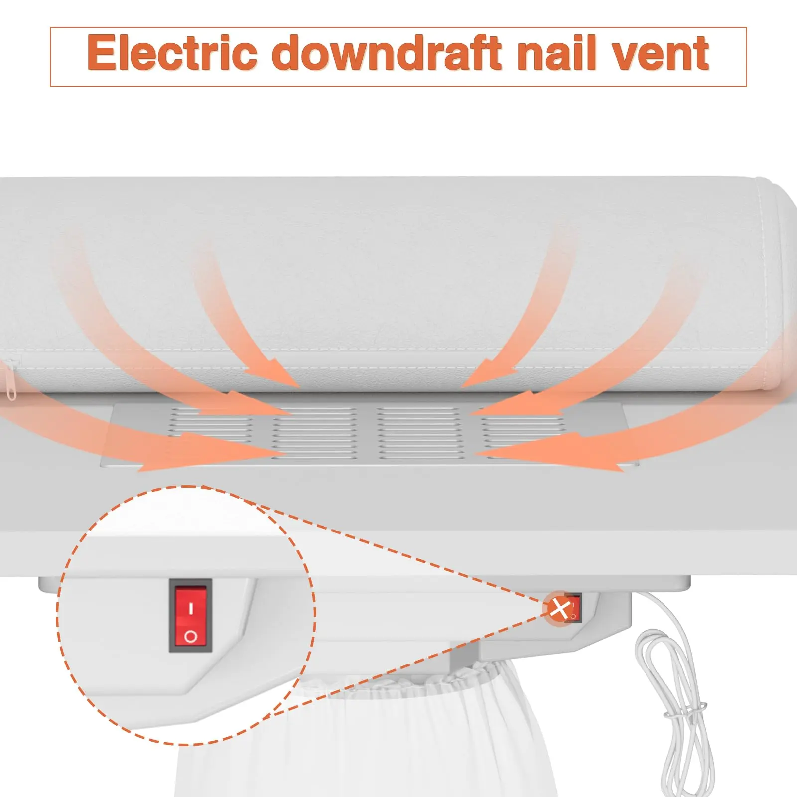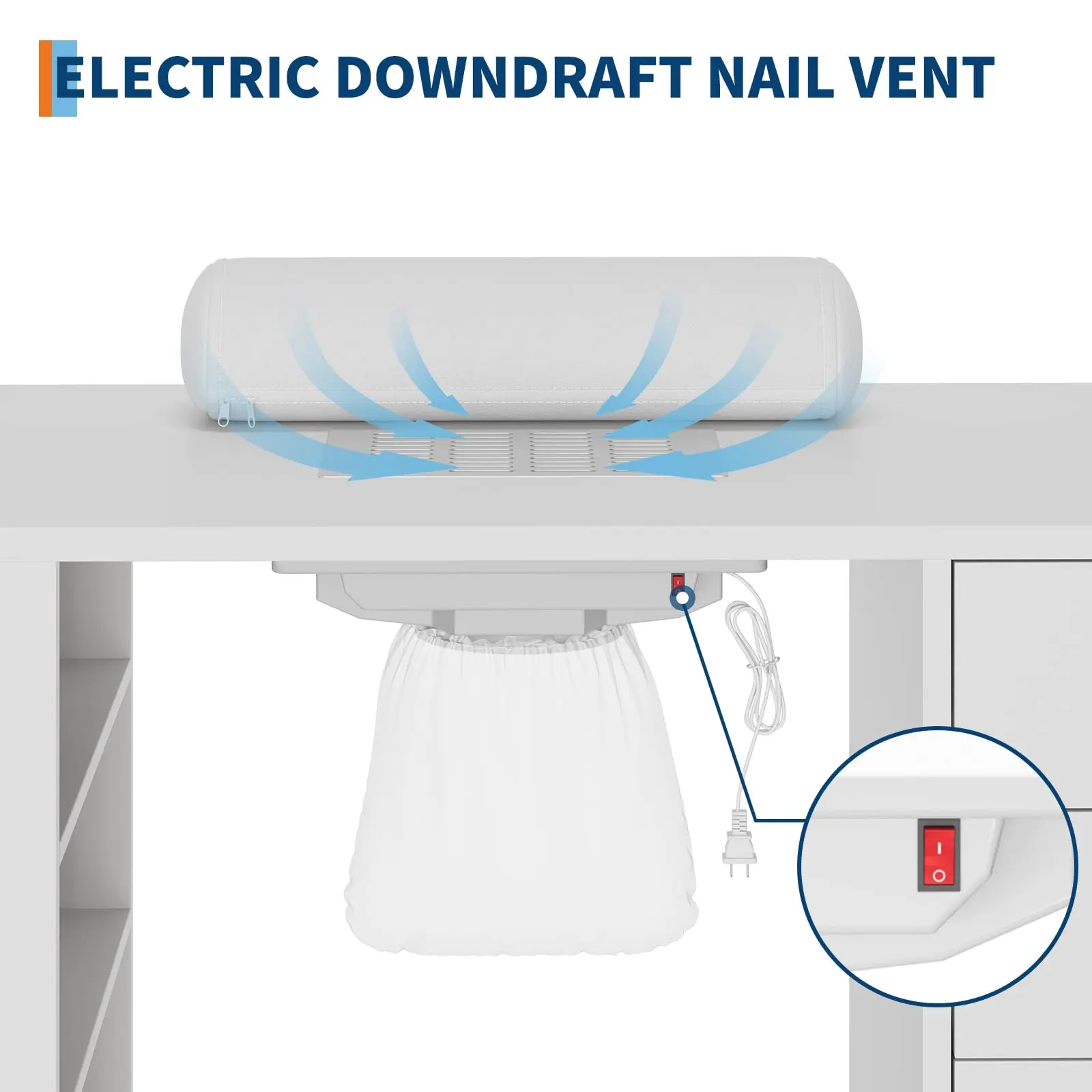· 【Innovative Electric Dust Collector】: The Nail Desk features an electric downdraft vent system that effectively collects dust, ensuring a clean environment, and includes two easy-to-empty reusable dust bags.
