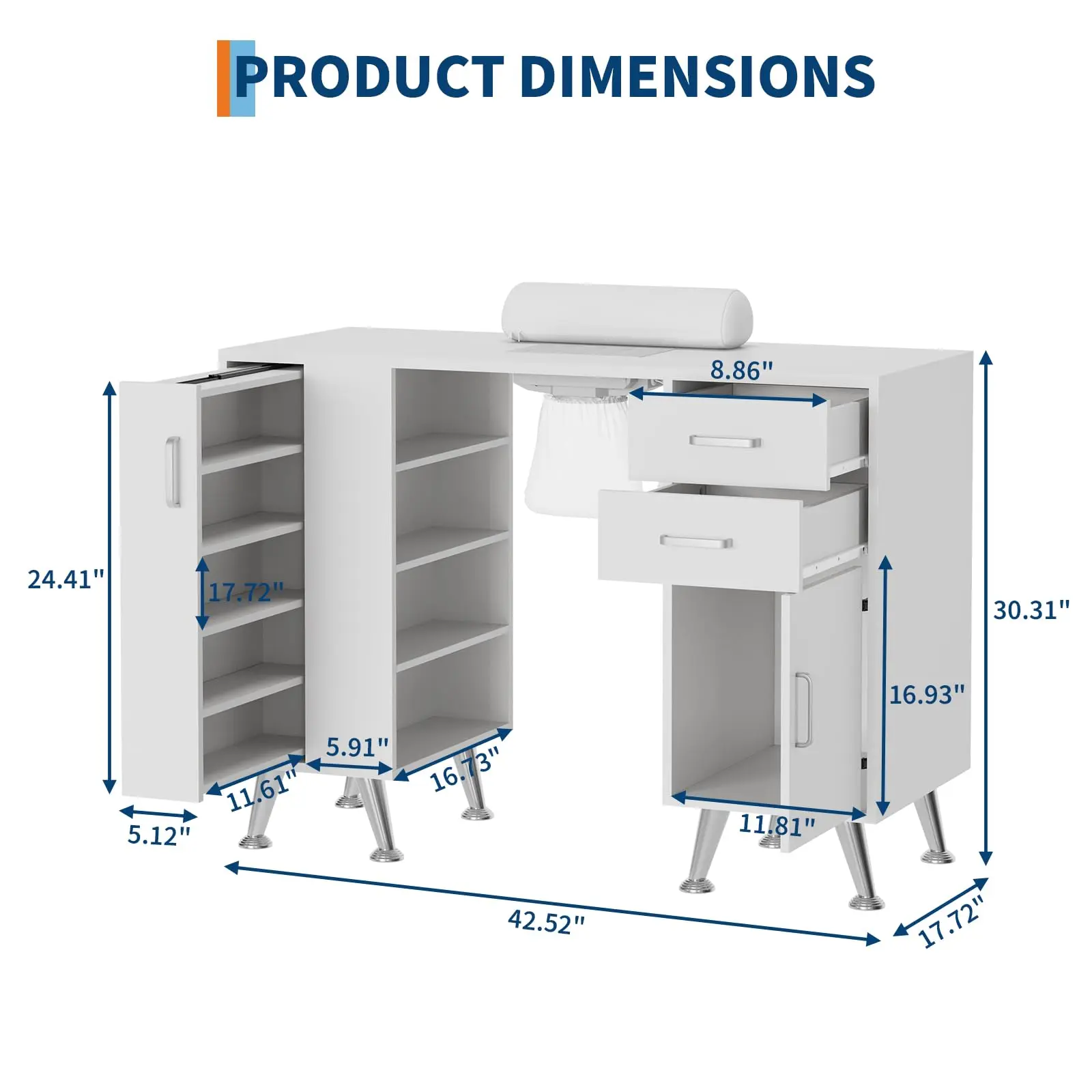 · 【Comfortable Detachable Wrist Cushion:】 Featuring a detachable sponge-filled wrist cushion, this nail desk for Beauty Salon Workstation provides exceptional comfort and support for your arms during long nail sessions, enhancing the manicure experience for both you and your clients.