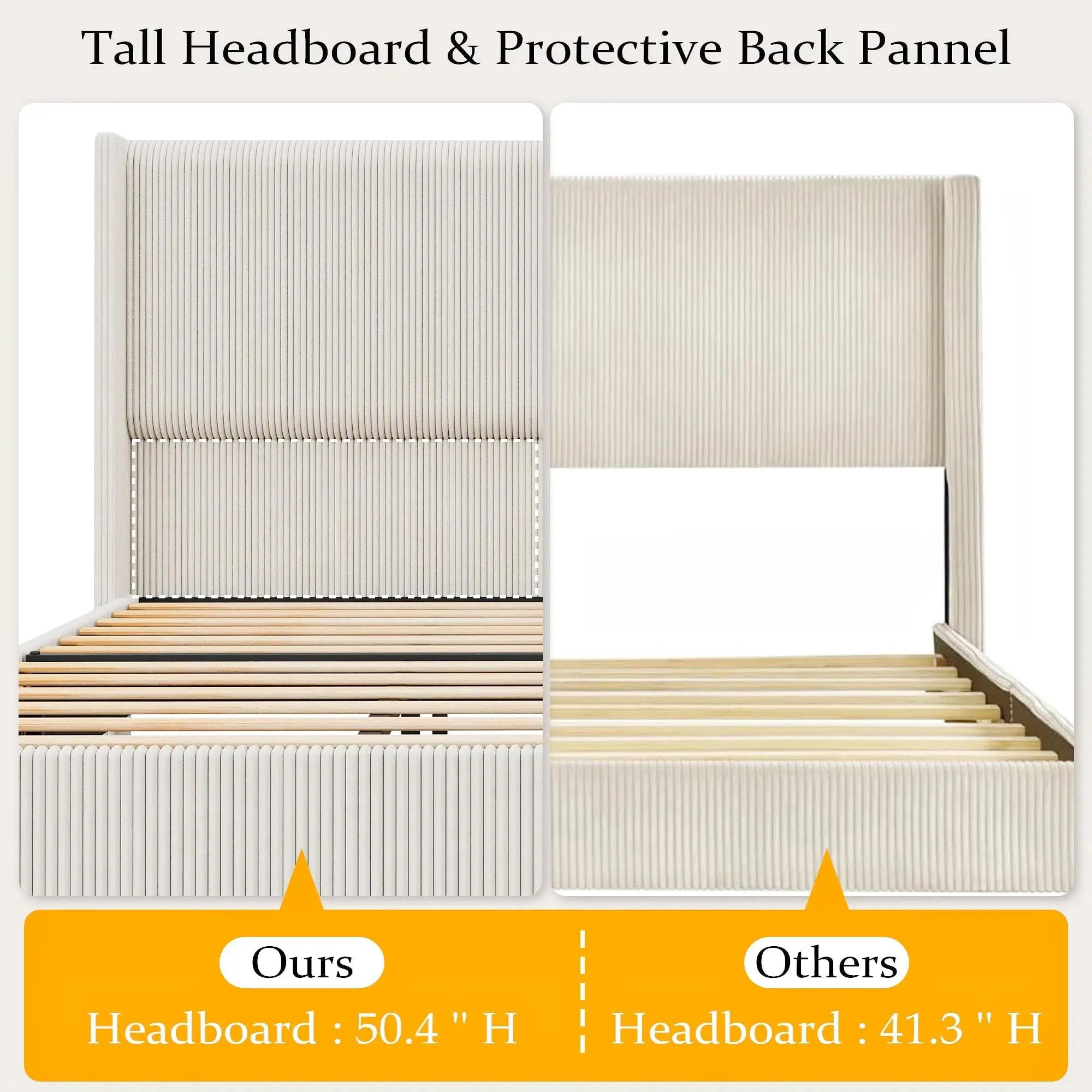 Garvee Queen Size Bed Frame, Corduroy Soft Queen Size Bed Frame With Upholstered 50.4" Wingback Headboard,  Sponge and Corduroy Fabric, Wooden Slats and  Support,Noise-Free, Beige
