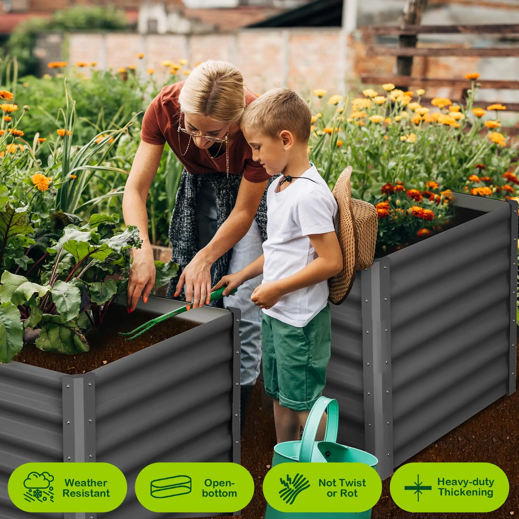 · UPGRADED QUALITY AND CONSTRUCTION: This outdoor raised garden bed is made of durable galvanized metal with double anti-corrosion protection. The rectangular structure design is beautiful and elegant, and the interface can withstand high pressure to ensure that it will not loosen in the long term.