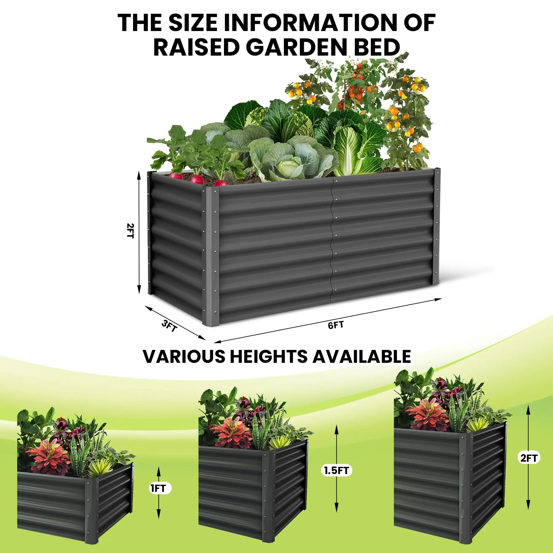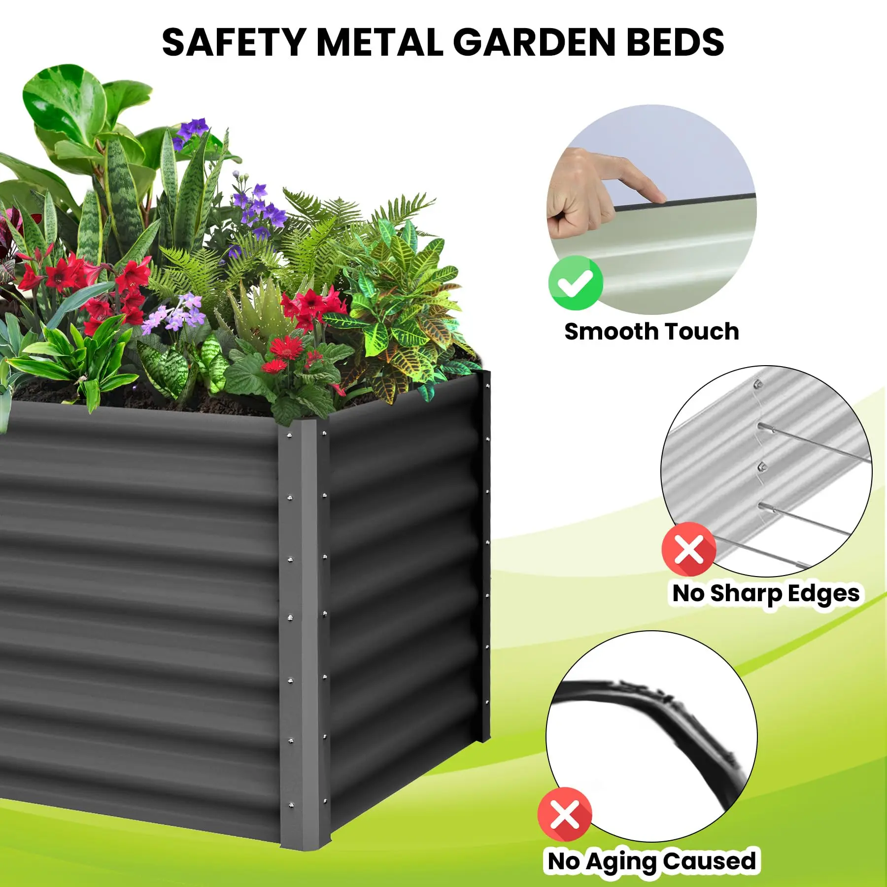 · SPACIOUS SIZE: Our flower bed measures 6 x 3 x 1 feet, providing plenty of room for a variety of plants to grow. The top edges are rolled for extra safety. Ideal for patios, yards, gardens and greenhouses.