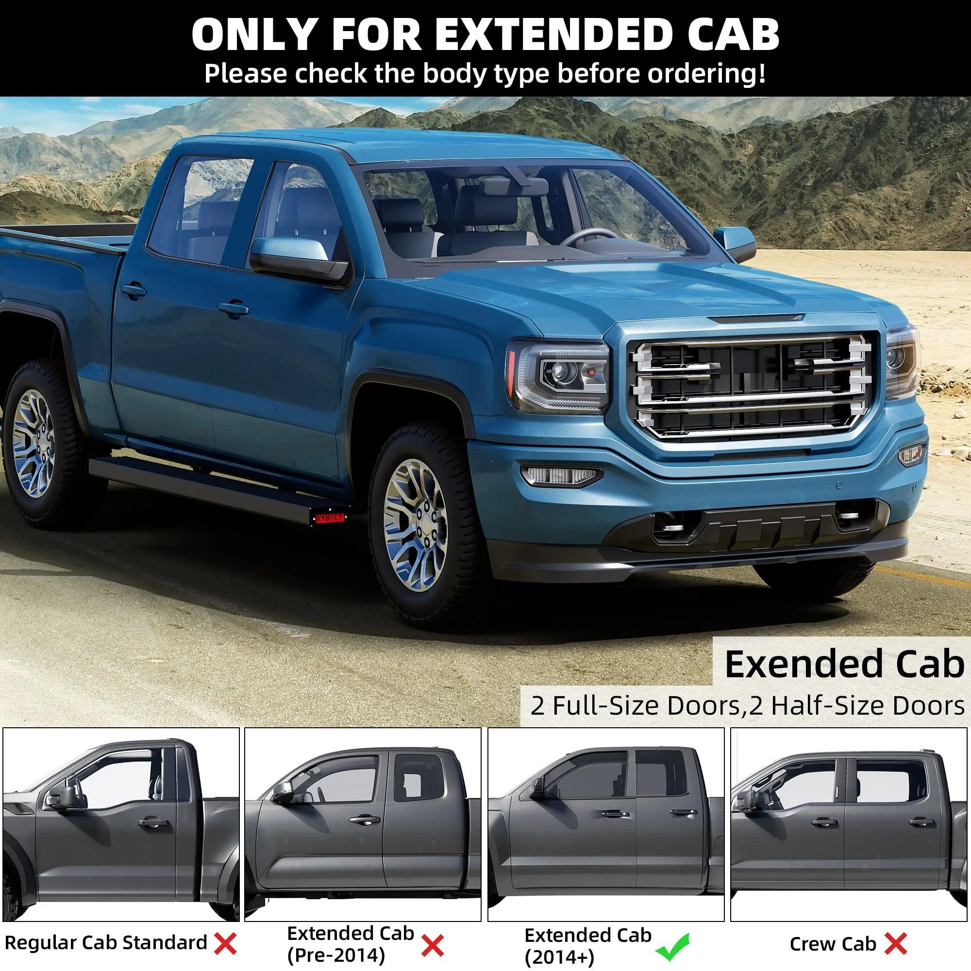 · Lightweight Durable Construction: GARVEE aluminum running boards are expertly crafted from high-quality aluminum alloy, combining exceptional durability with a lightweight design. This ensures strength, corrosion resistance, and improved fuel efficiency, making them an ideal choice for the Chevy Silverado/GMC Sierra 1500 2500HD 3500HD.