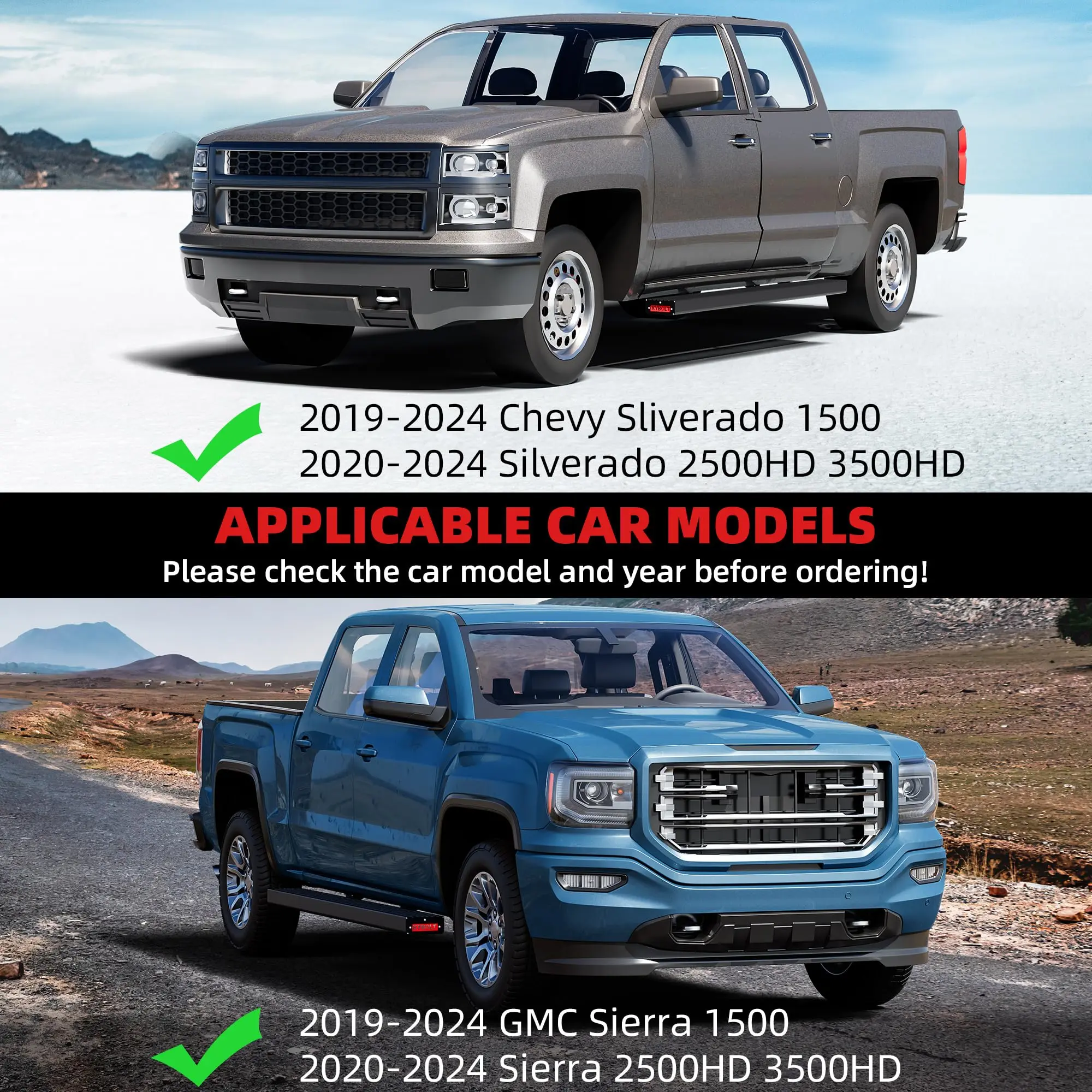· Custom Fit:Vehicle specific for 2019 2020 2021 2022 2023 2024 Chevrolet Silverado/GMC Sierra 1500 Double Cab/Extended Cab.Note:2019 Chevrolet Silverado 1500 LD,2022 Chevrolet Silverado1500 LTD,2019 GMC Sierra 1500 Limited,2019 2019 GMC Sierra 1500 Limited Double Cab/Extended Cab are excluded