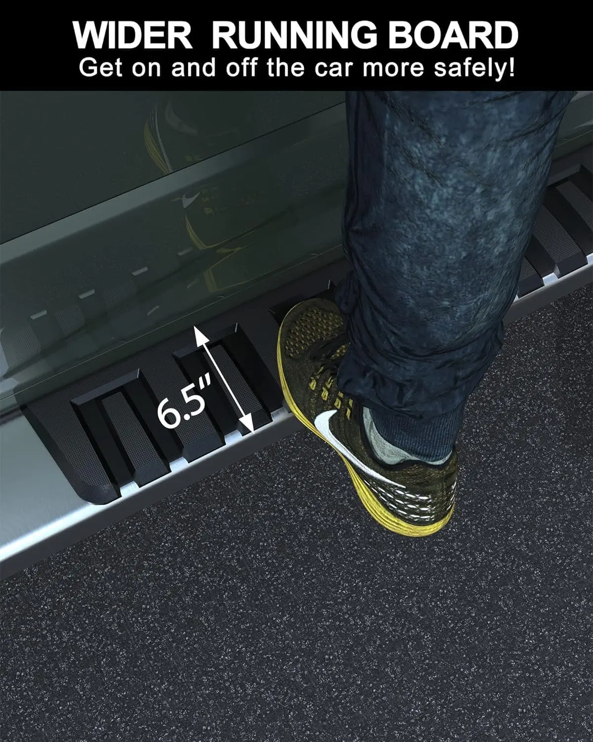 · Optimal Traction and Stability: The running boards feature a non-slip surface, providing enhanced traction and stability, particularly in challenging weather conditions or on slippery surfaces.