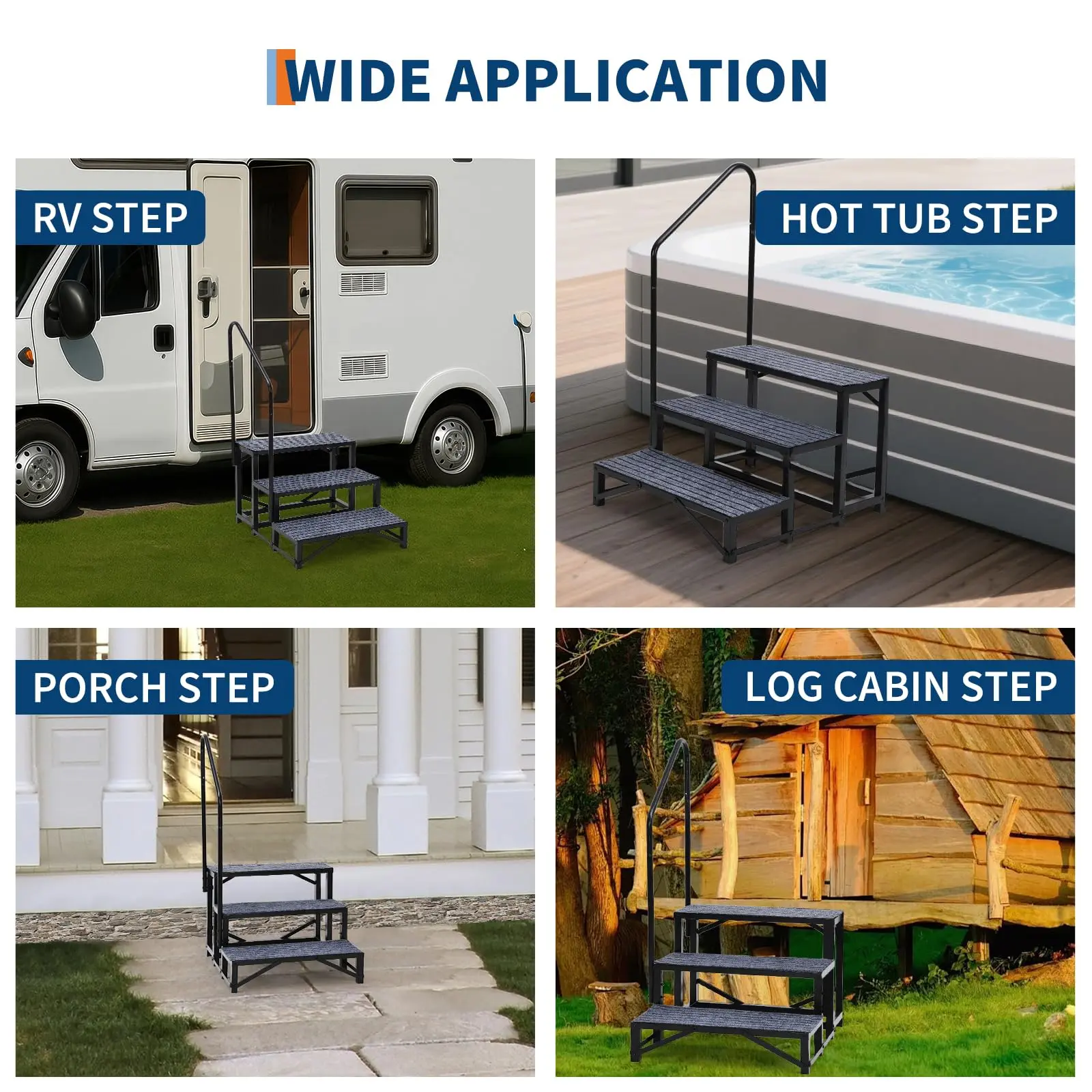 · Ultimate Versatility for RVs, Hot Tubs, Pools & Beyond: Perfect as portable RV steps for your camper, stable stairs for your hot tub, or secure access for porches, swimming pools, and more. This lightweight, compact step ladder is your multi-purpose solution for camping, travel, and everyday outdoor living.