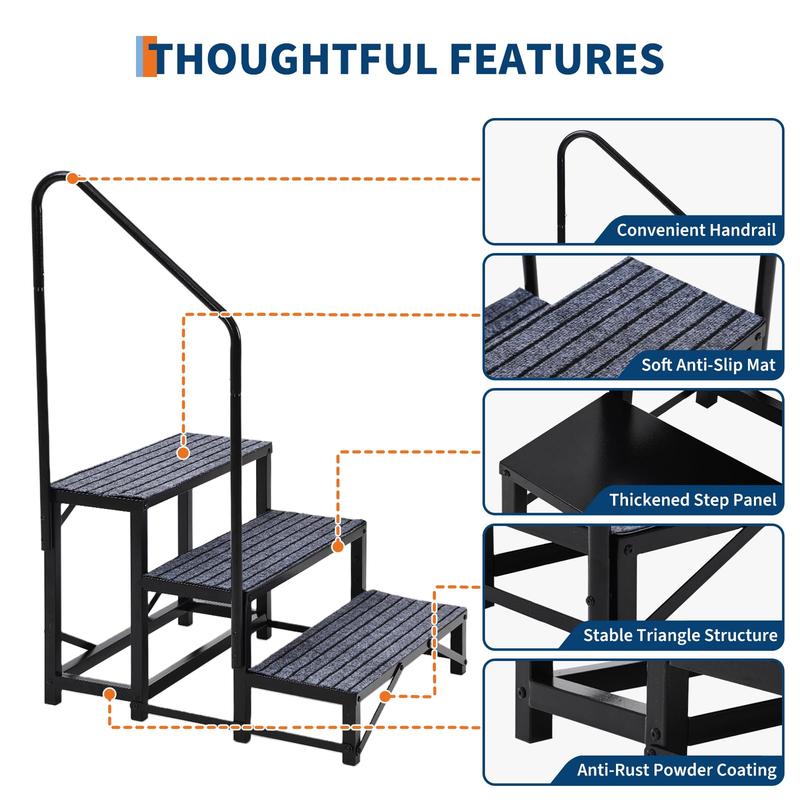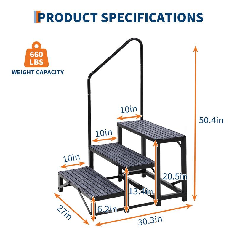 Garvee RV Steps with Single Handrail, 3-Step RV Stairs Hot Tub Steps with Non-Slip Mats, 660 LBS Weight Capacity, Portable Step Ladder for Travel Trailer, Camper, Porch, Outdoor Pool, Pets