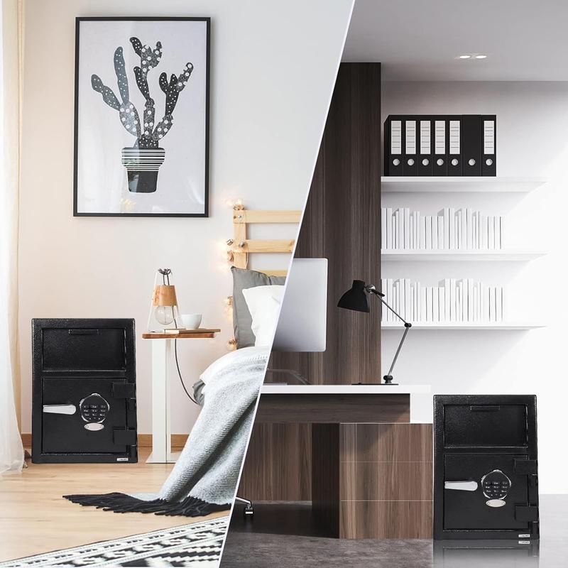 · Fireproof & Durable: Designed with fireproof materials, this drop safe provides added protection against fire and theft, making it reliable for safeguarding cash, valuables, and important documents.