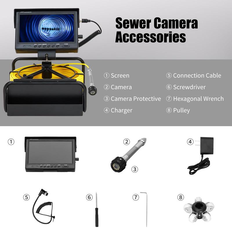 · 100 FT Extended Cable: This sewer inspection camera with a 100 ft. fiberglass cable featuring length markers, this sewer inspection camera lets you easily measure the distance during inspections. The included portable reel makes storing and handling the cable convenient.