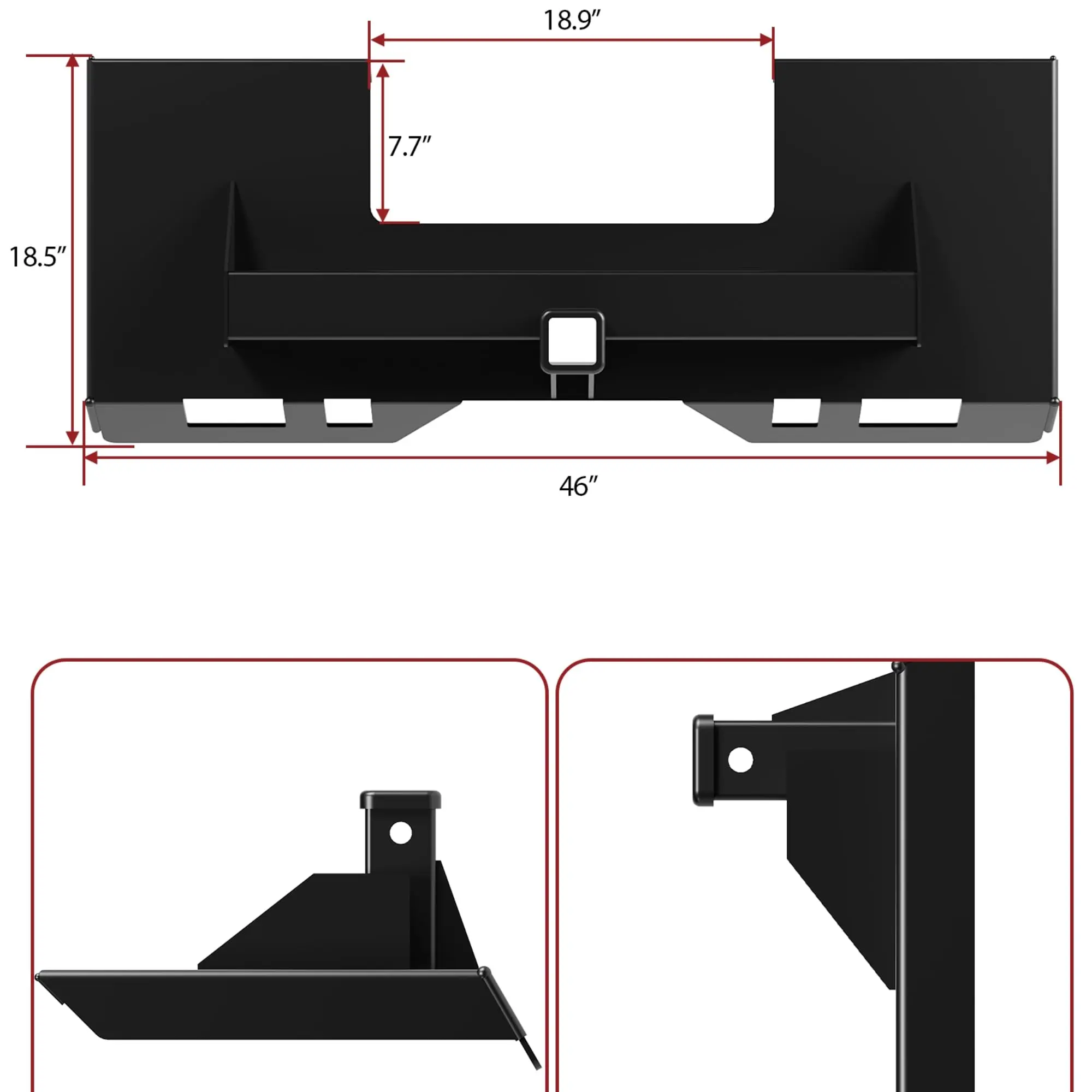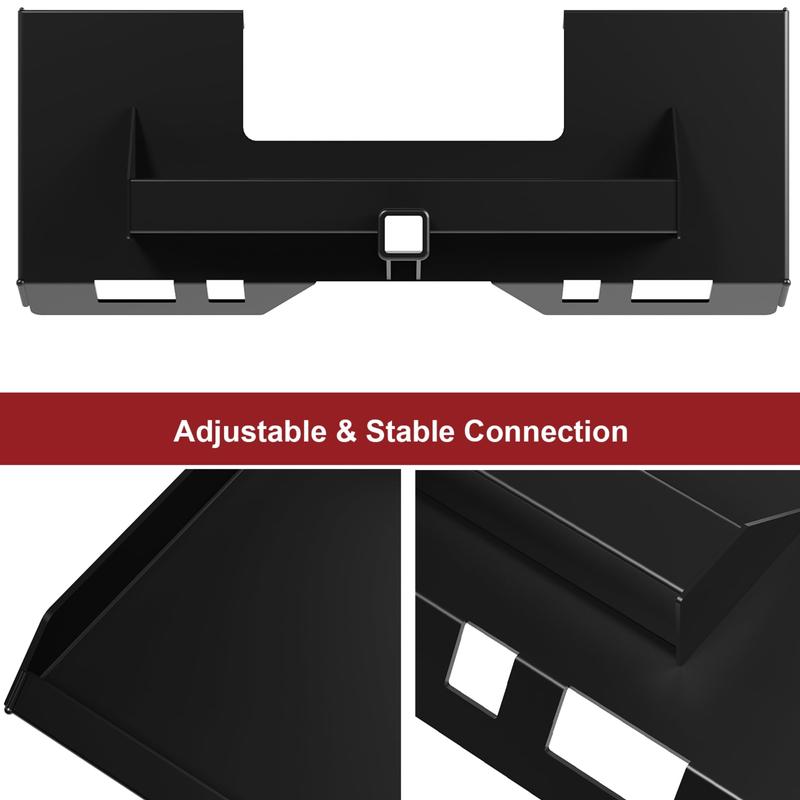 · Universal Compatibility: This mount plate offers universal compatibility with a variety of loaders, tractors, and other machinery. It easily integrates with popular brands like Kubota and Bobcat, and its innovative design includes a 2-inch removable trailer hitch receiver, ensuring a seamless fit that maximizes your equipment's efficiency without any hassle.