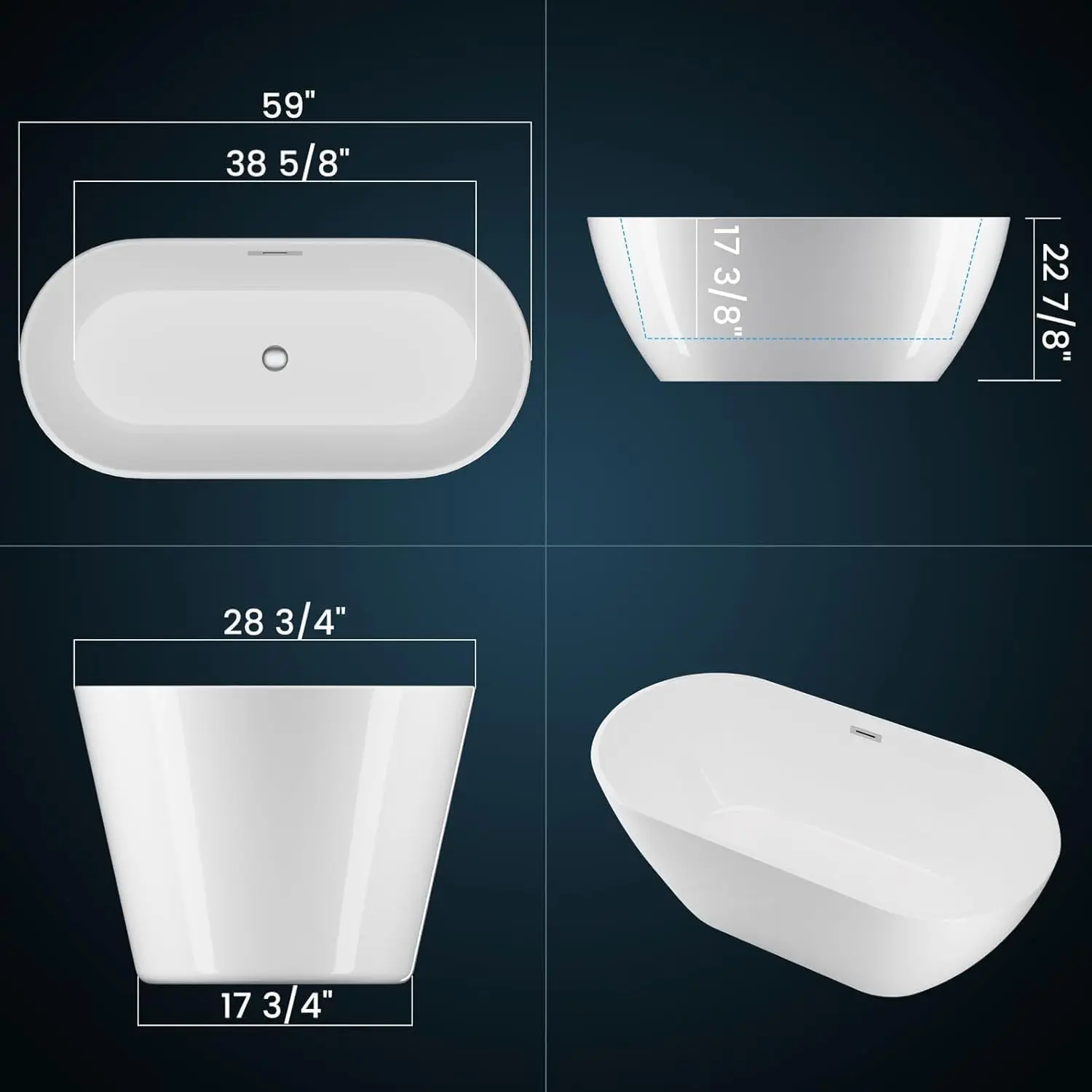· Ergonomic freestanding design with contoured lumbar support and deep soaking depth, providing full-body comfort and relaxation.