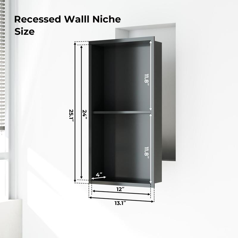 · Easy Installation: Enjoy hassle-free installation with the recessed wall niche, designed for quick mounting in any wall opening; in just a few simple steps, you can enhance your bathroom without the need for complicated tools or wasted time