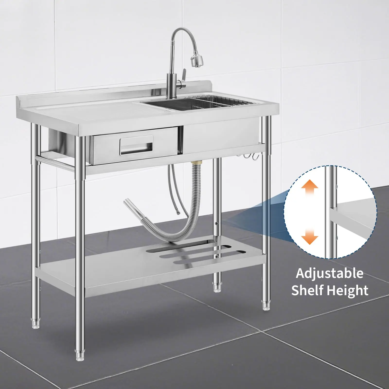 · Durable Stainless Steel Construction: Built with a 201 stainless steel frame and a 1.0mm thick 304 stainless steel basin, this utility sink is designed for heavy-duty use in commercial and residential settings, offering long-lasting durability and rust resistance.