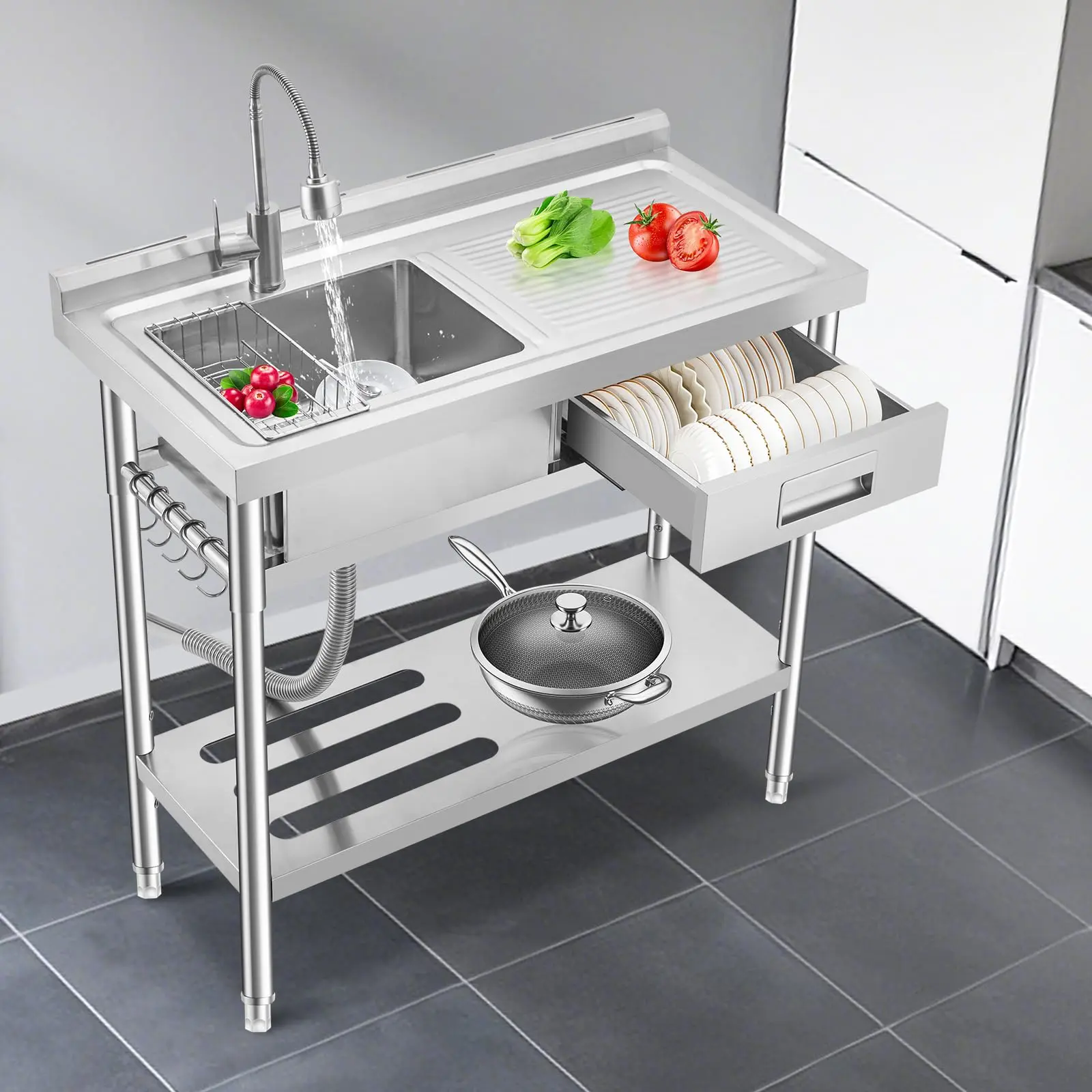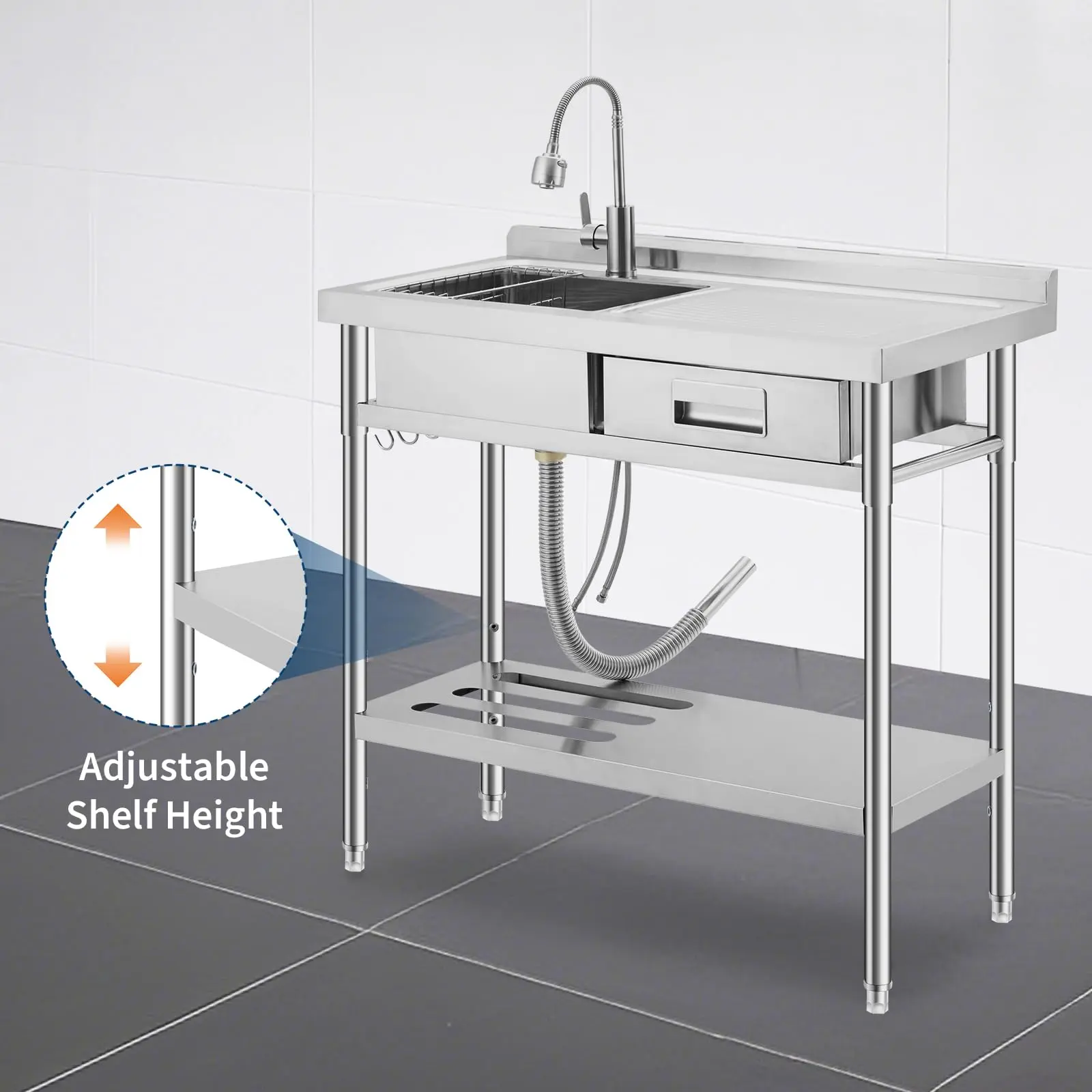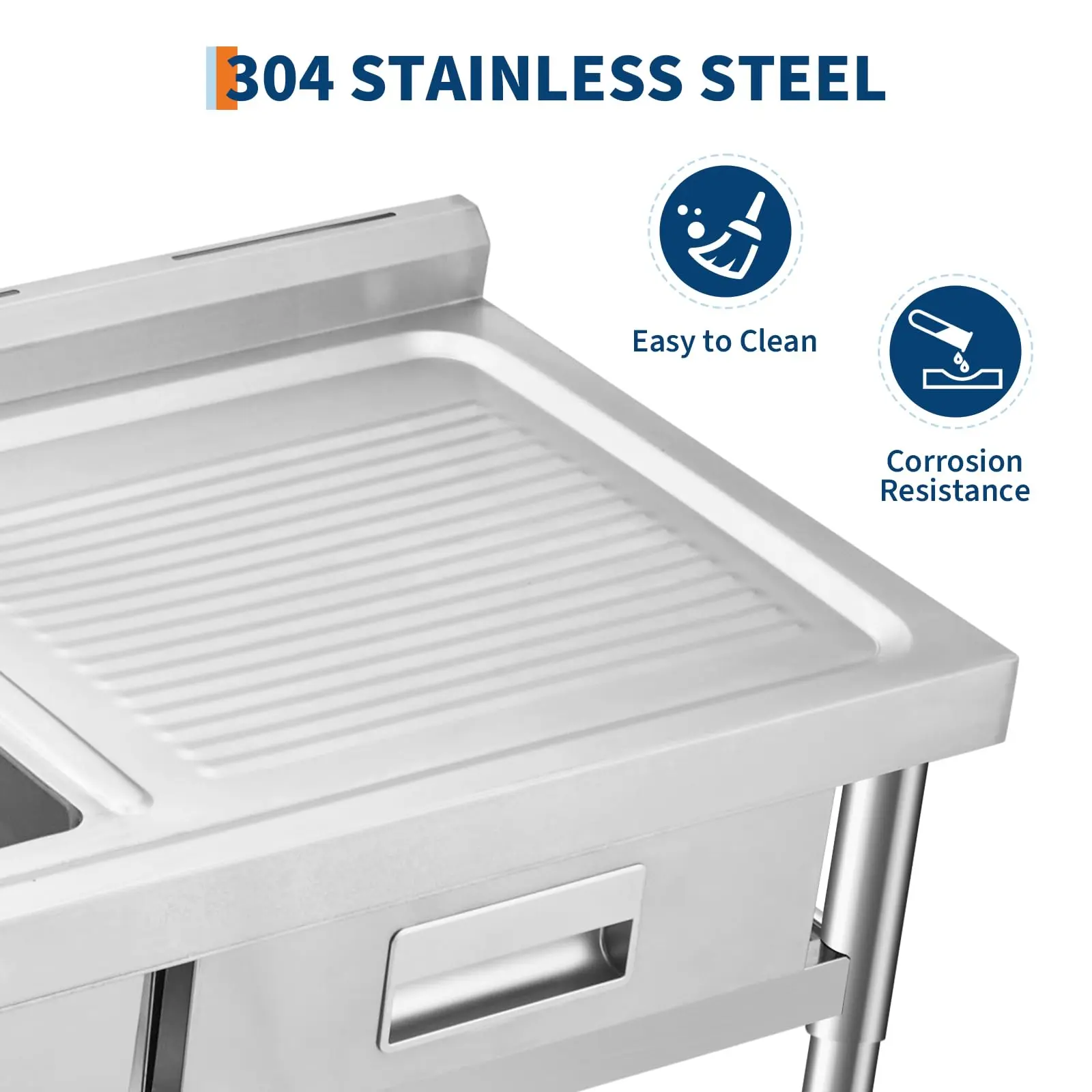· Durable Stainless Steel Construction: Built with a 201 stainless steel frame and a 1.0mm thick 304 stainless steel basin, this utility sink is designed for heavy-duty use in commercial and residential settings, offering long-lasting durability and rust resistance.