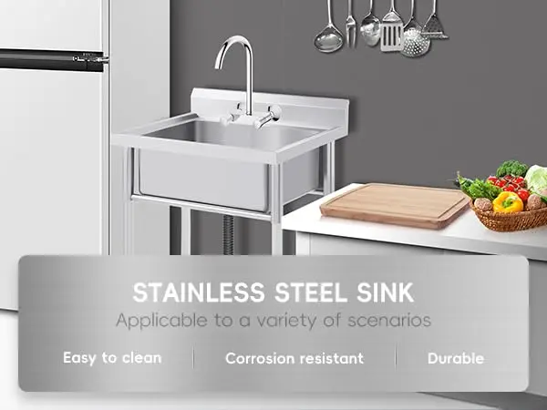 · 【Heavy-Duty Stainless Steel Utility Sink】 Crafted from premium 304 stainless steel, this freestanding utility sink offers superior resistance to rust, corrosion, and dents. Perfect for garage sinks, restaurant sinks, and laundry utility sinks used daily.