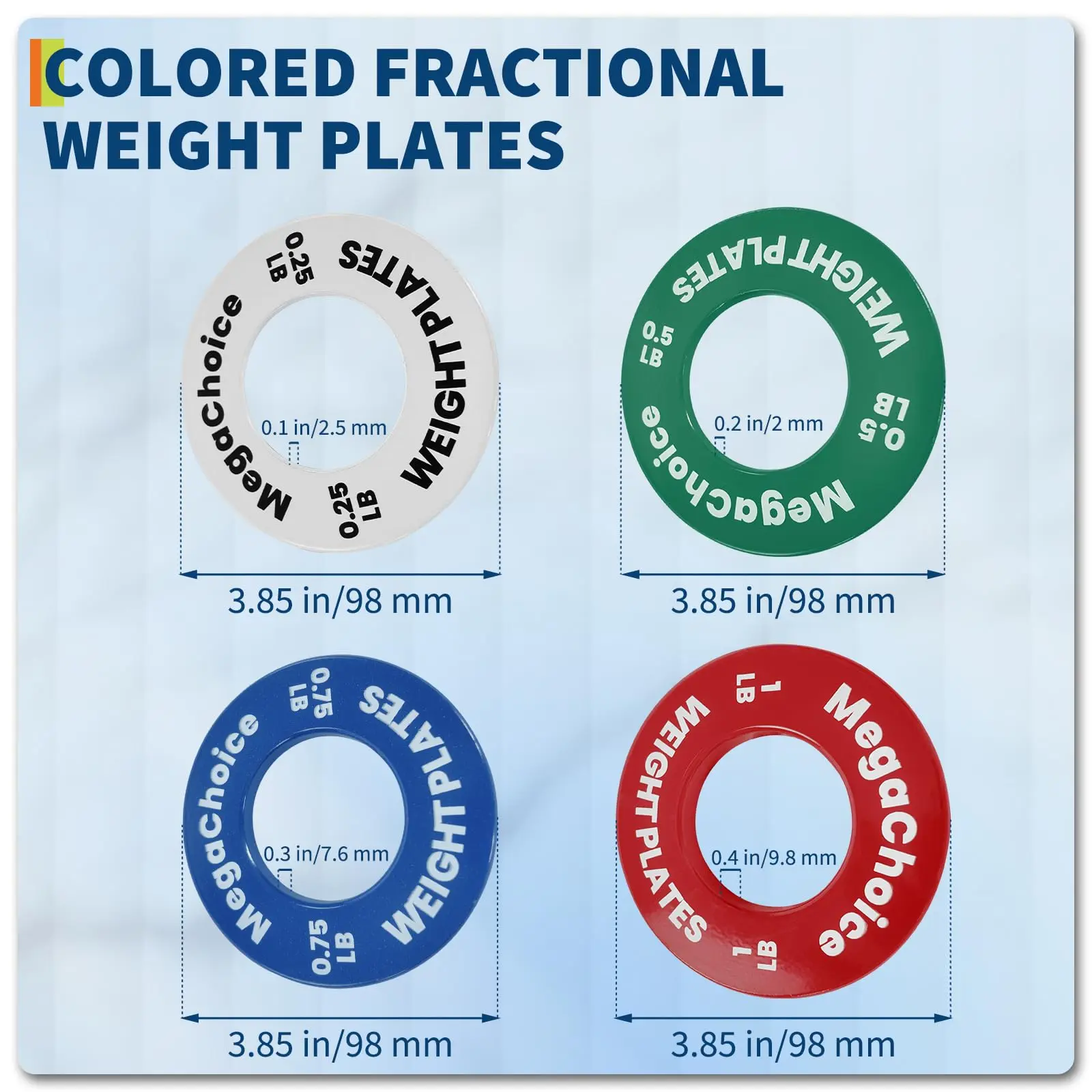 · 【Color-Coded for Quick Identification】Vibrant color-matched plates (red 0.25 LB, blue 0.5 LB, etc.) help you quickly select the right weight during workouts, saving time and improving workout flow.