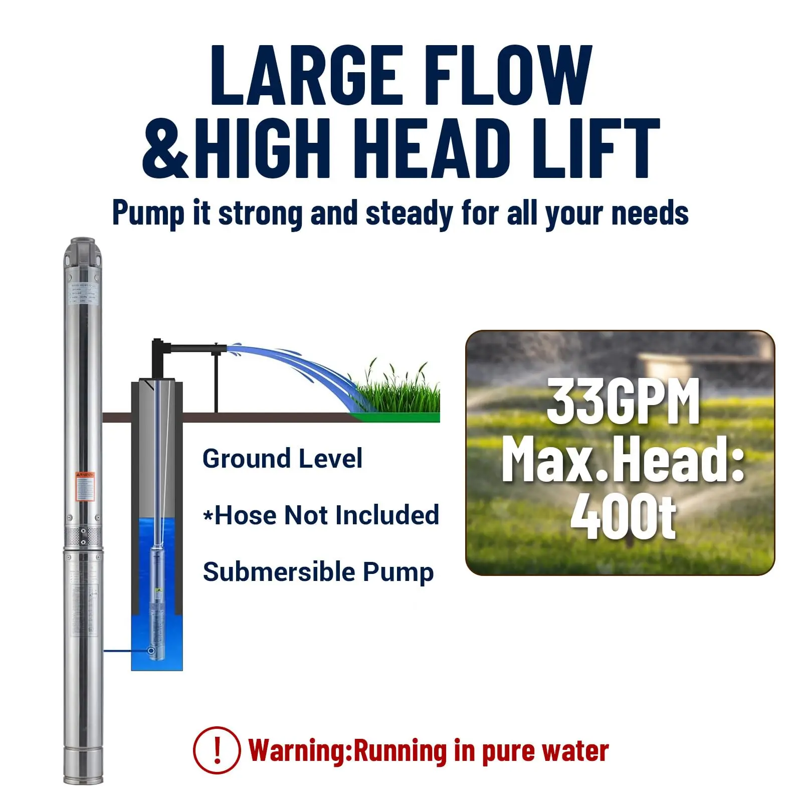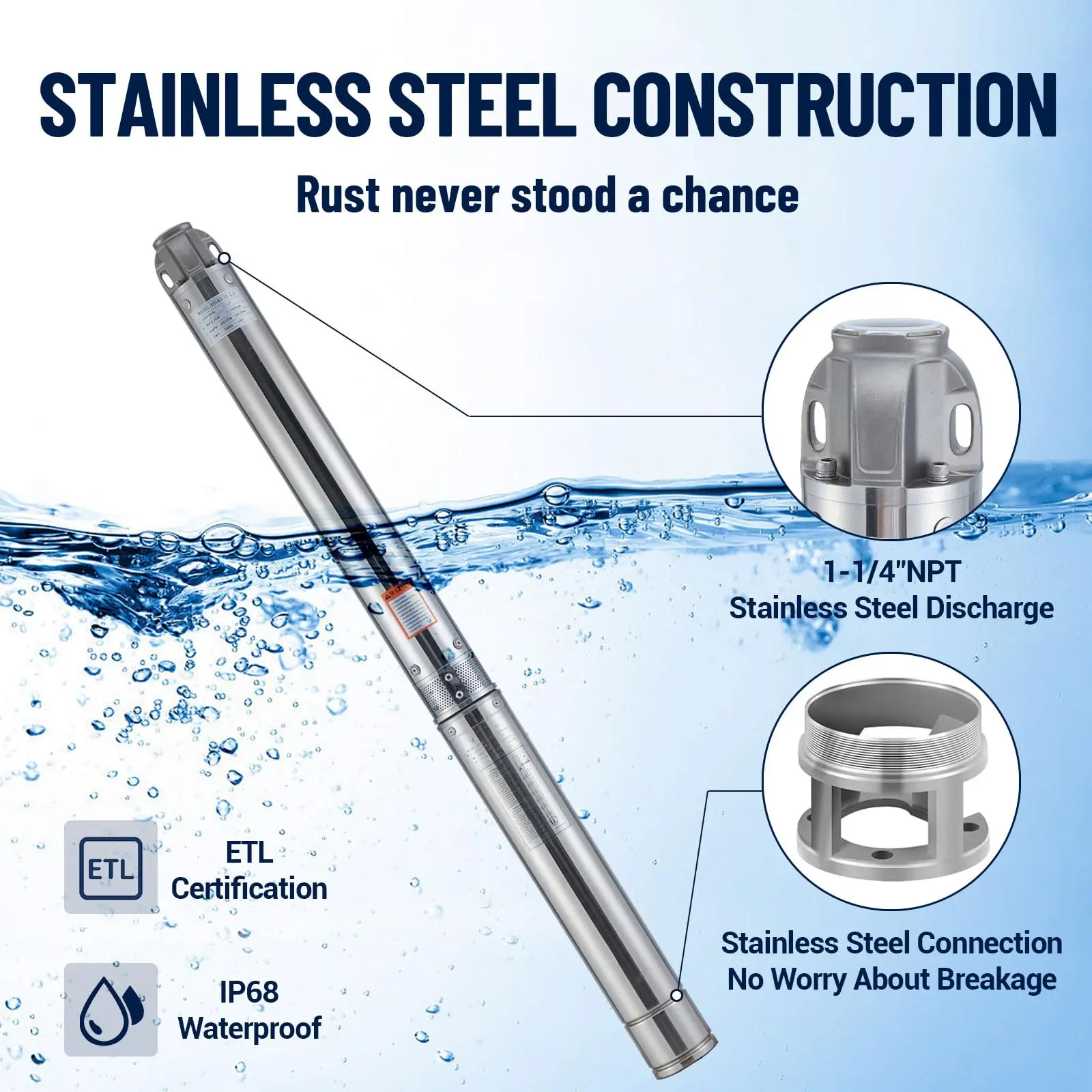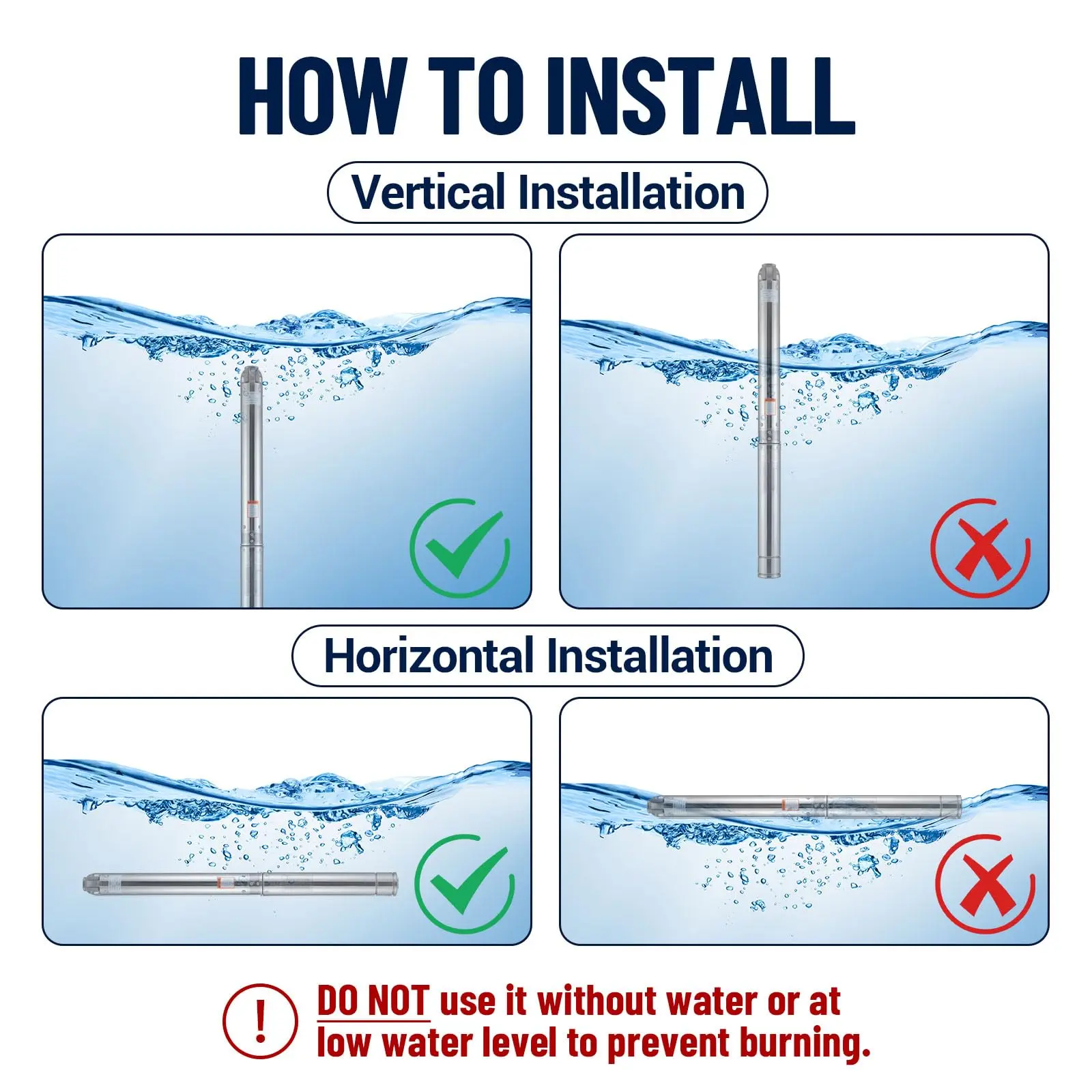 · Versatile Use: Perfect for both home and industrial applications, this 4-inch submersible pump is suitable for various tasks, from irrigation to residential water supply, making it a versatile addition to your toolkit.