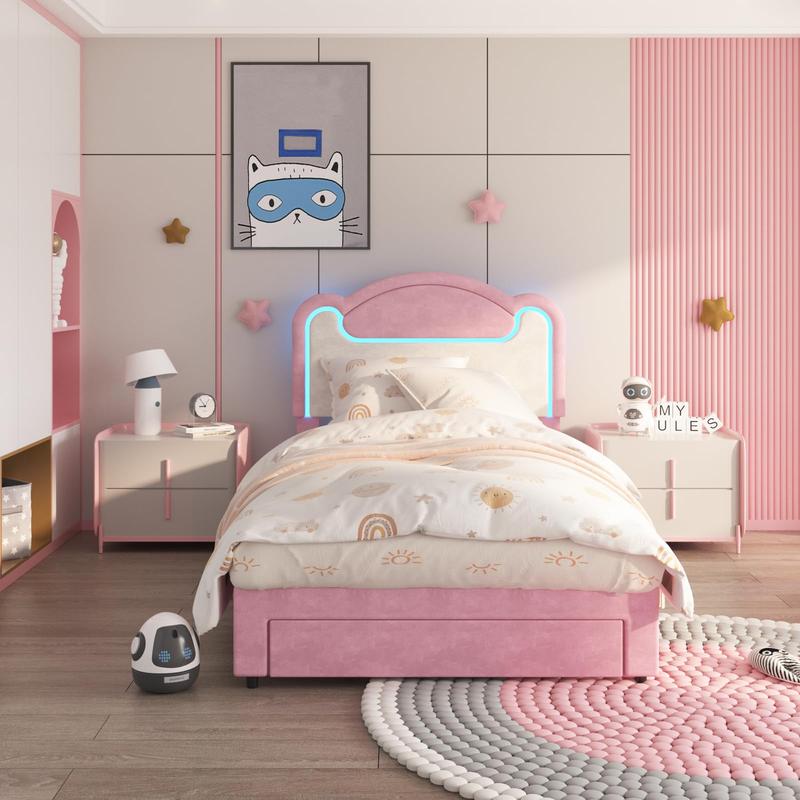 · Toddler Bed with Integrated Light Design: Featuring a decorative light design along the bed frame, this toddler bed adds a gentle visual accent to bedroom spaces. The light element helps create a cozy atmosphere, suitable for evening routines and quiet sleep environments.