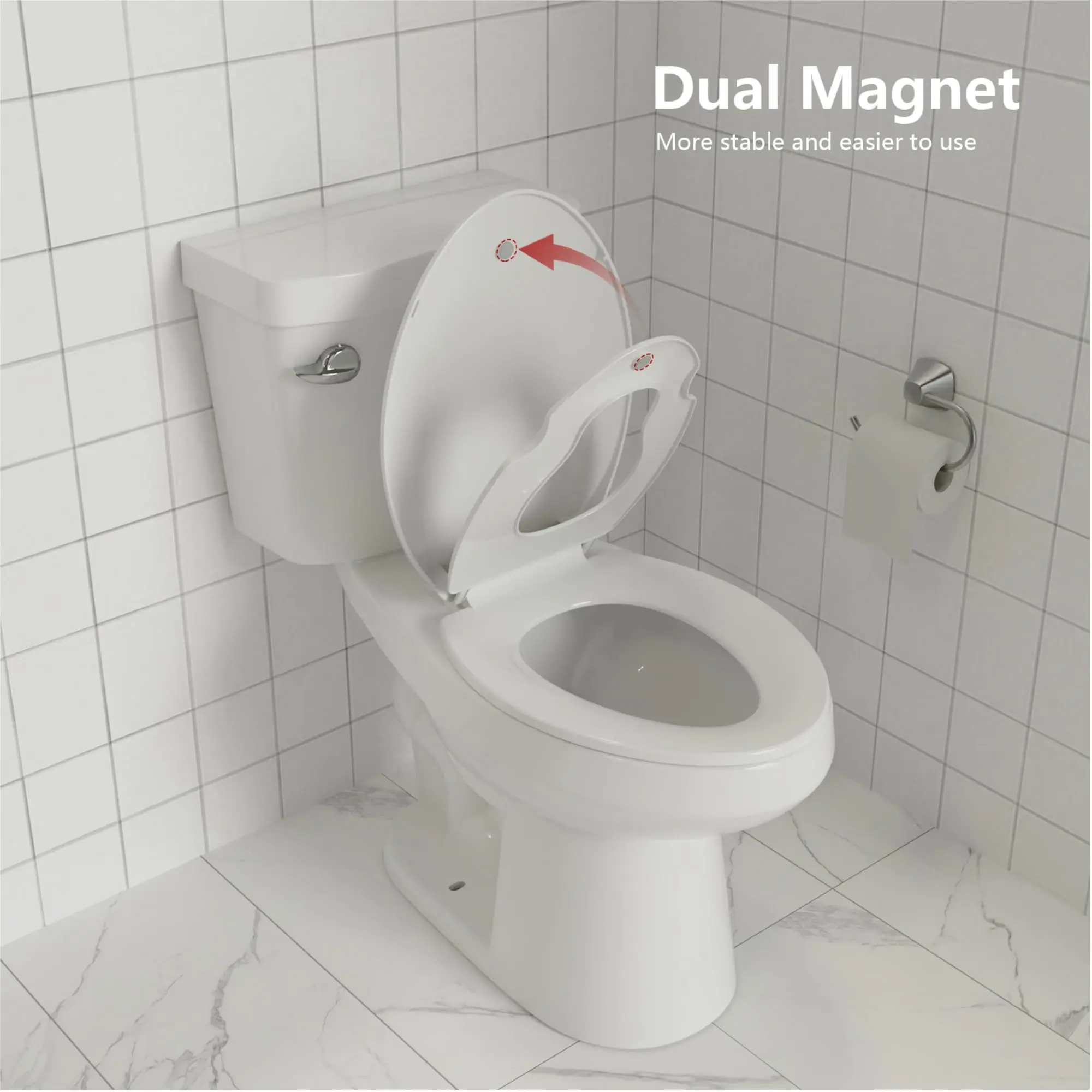· 【Fits Both Adult and Child】- This toilet seat with toddler seat built in, suitable adult and child seat ring size, meet all family members' need; The Single Magnet, specifically crafted for children's toilet seats, allows kids to pull it down with ease and fosters their self-sufficiency in using the potty.