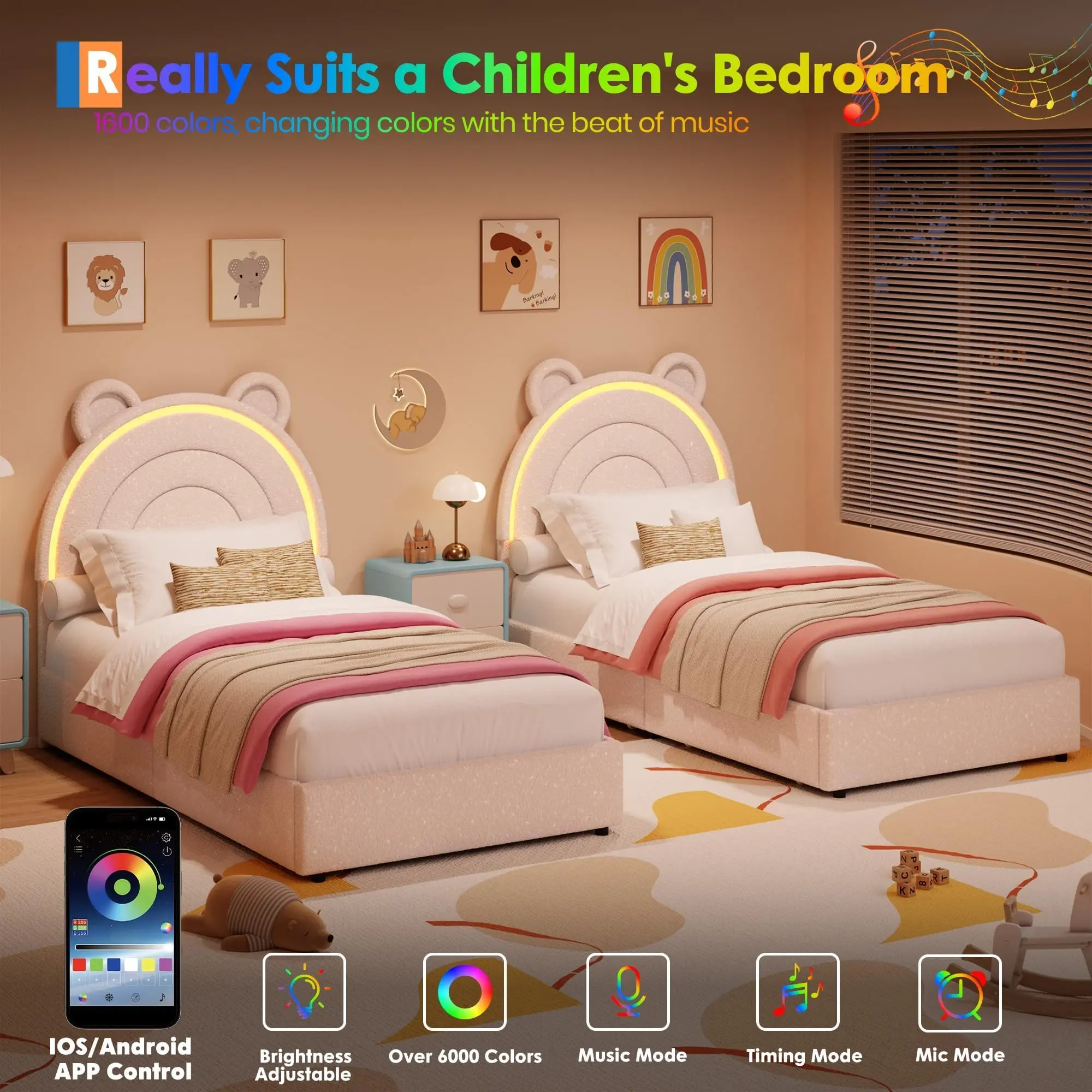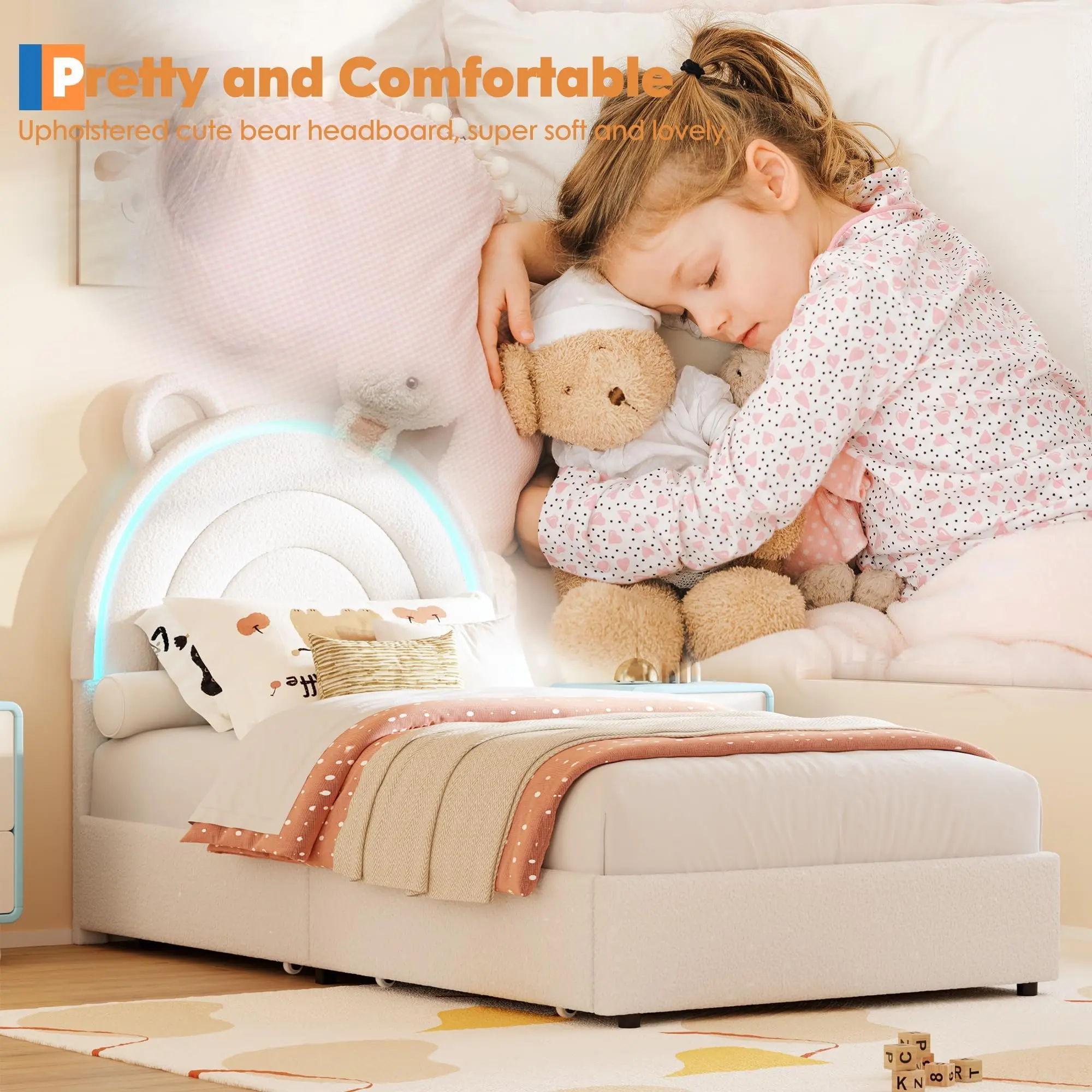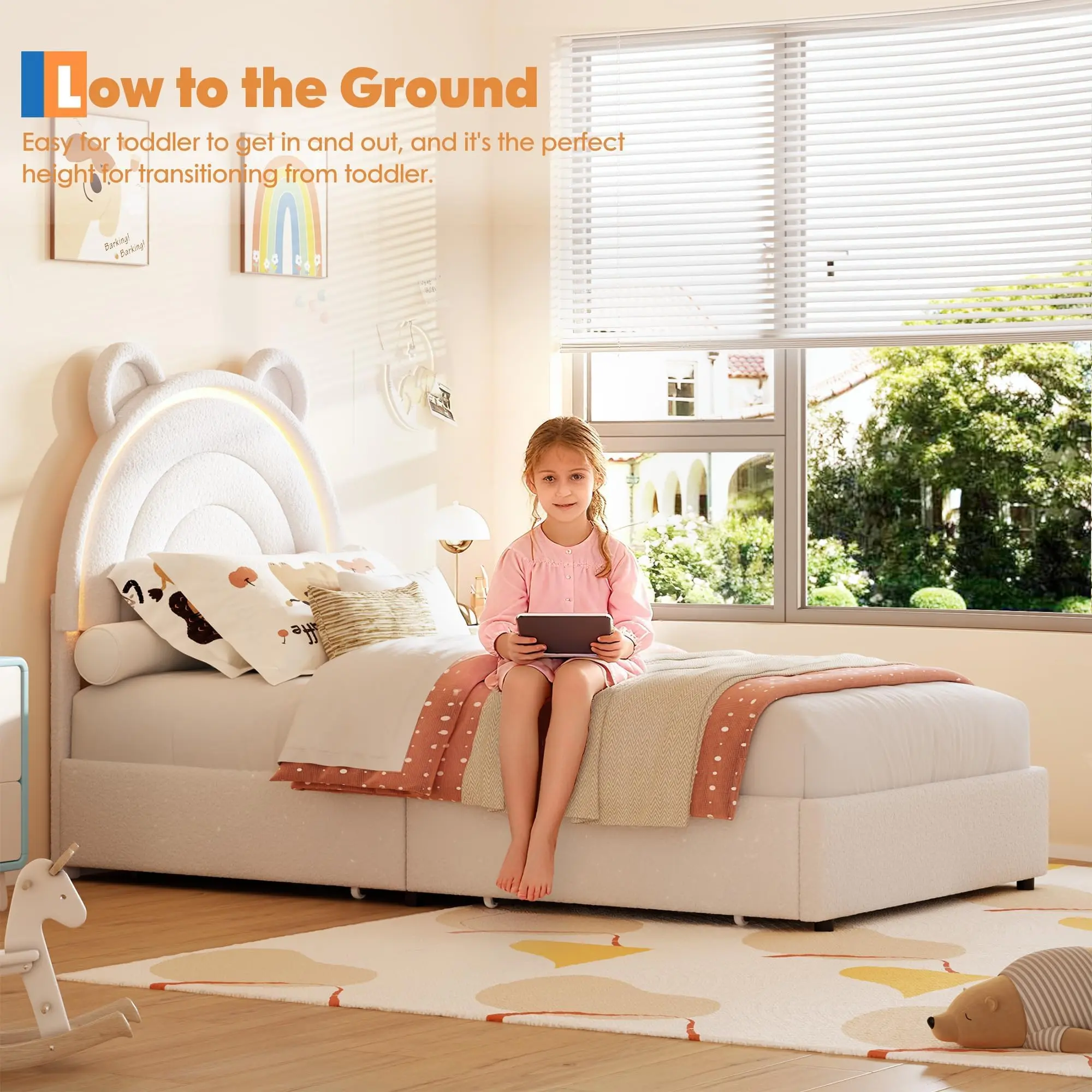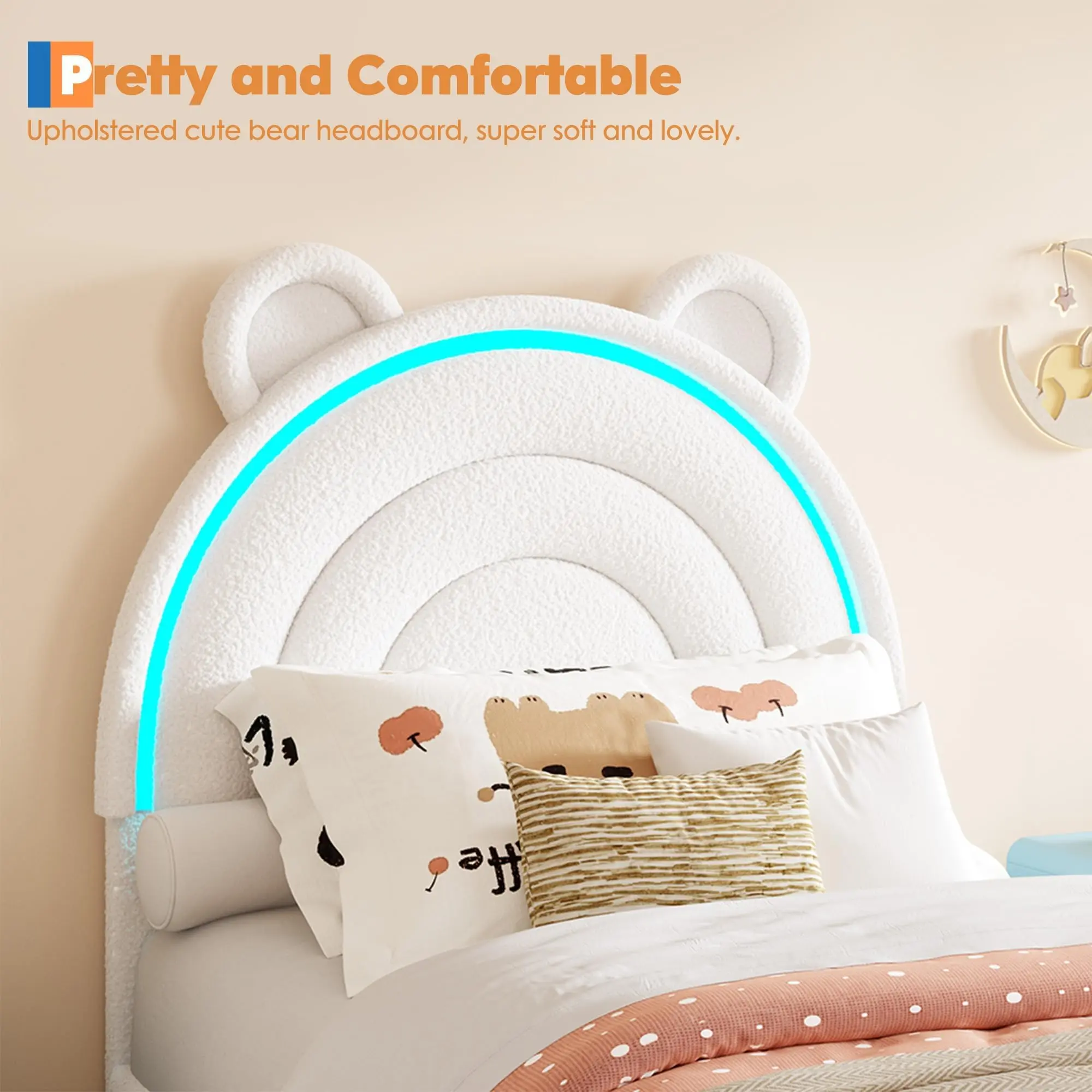 · 【Charming Design】The twin bed frame features a cute fleece fabric that appeals to kids and girls, adding a touch of elegance and luxury to any bedroom decor, making it a perfect choice for your little princess's dream room.