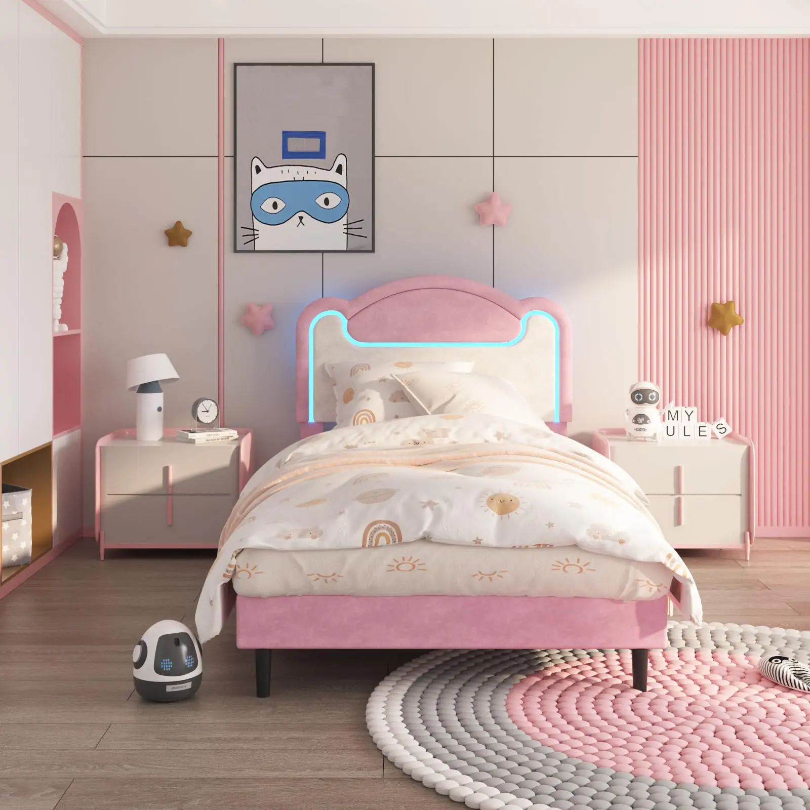 · Toddler Bed with Integrated Light Design: Featuring a decorative light design along the bed frame, this toddler bed adds a gentle visual accent to bedroom spaces. The light element helps create a cozy atmosphere, suitable for evening routines and quiet sleep environments.
