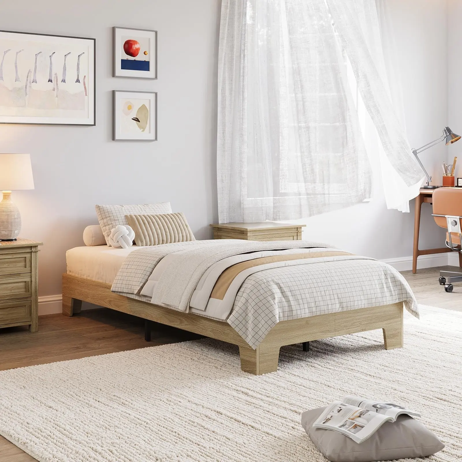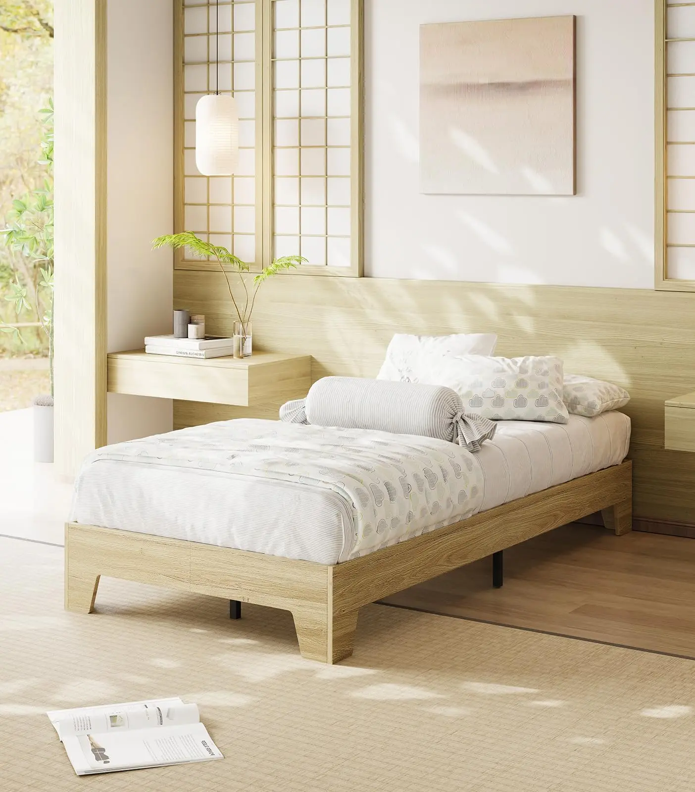 · 🎨 Seamlessly Blends with Modern,Scandinavian & Japandi Interiors–The low-profile silhouette and neutral wood tone complement light-colored walls,linen bedding,and minimalist decor for a peaceful,intentional living space.
