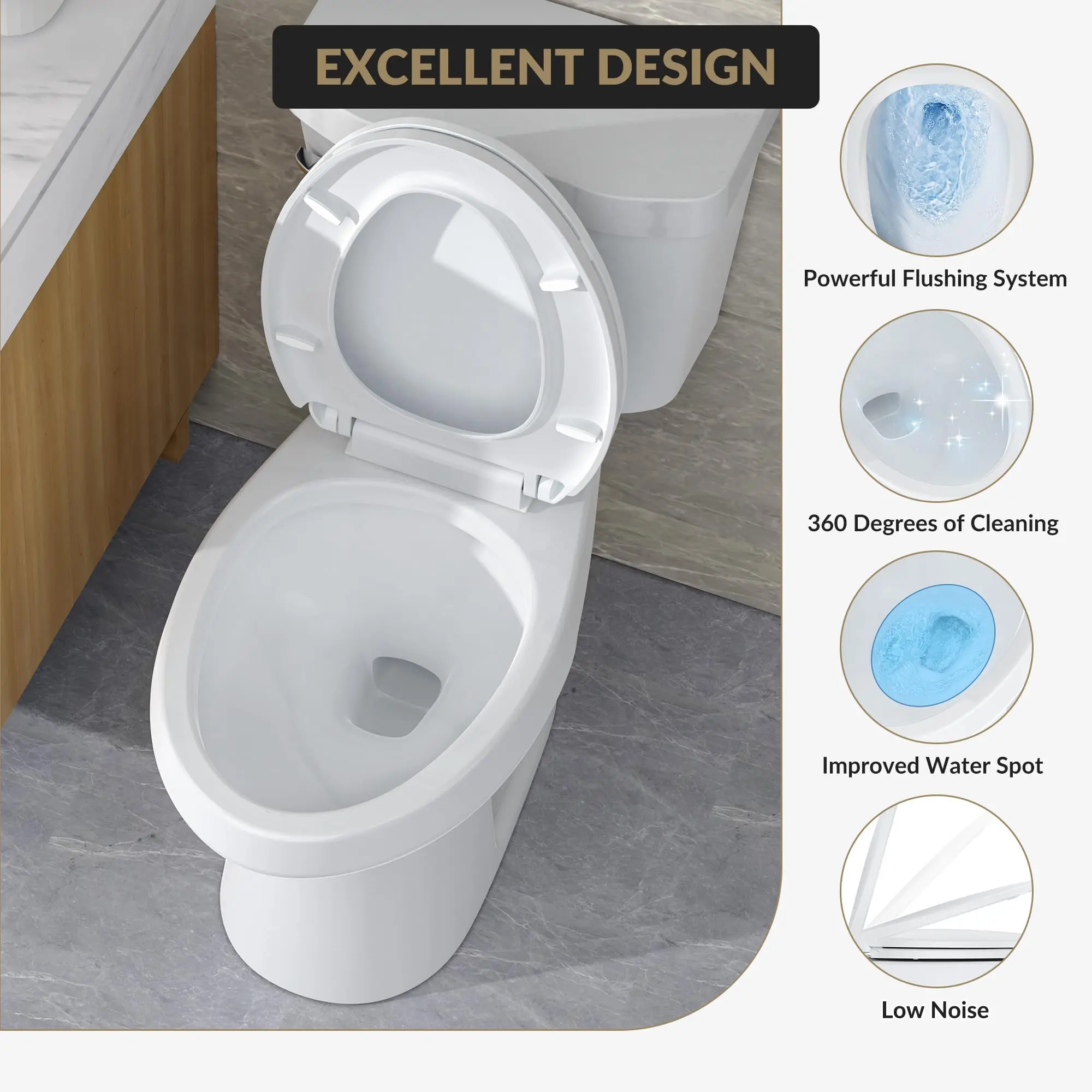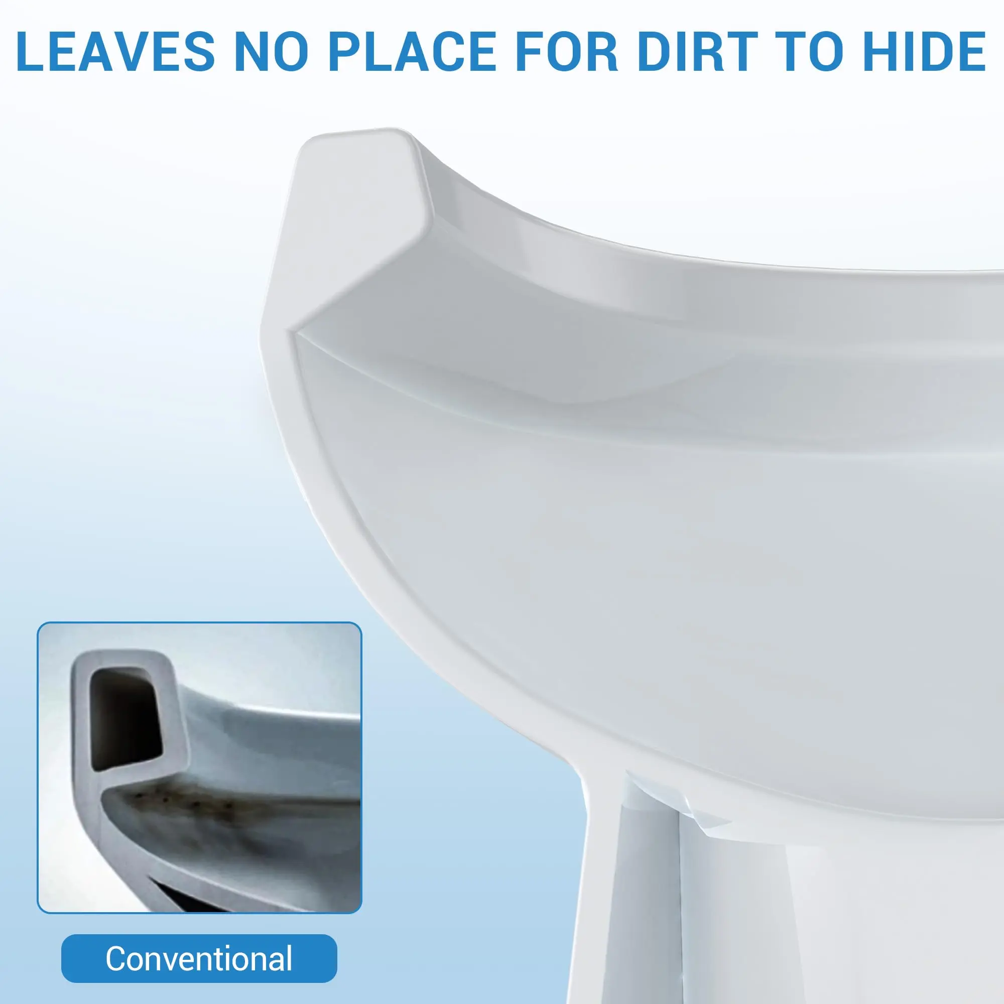 · Easy Clean & Assembly: This toilet features a completely smooth ceramic surface that is easy to wipe down. The rimless design removes areas where waste can accumulate, simplifying the cleaning process. Assembly is simple with the included hardware and easy-to-follow instructions.
