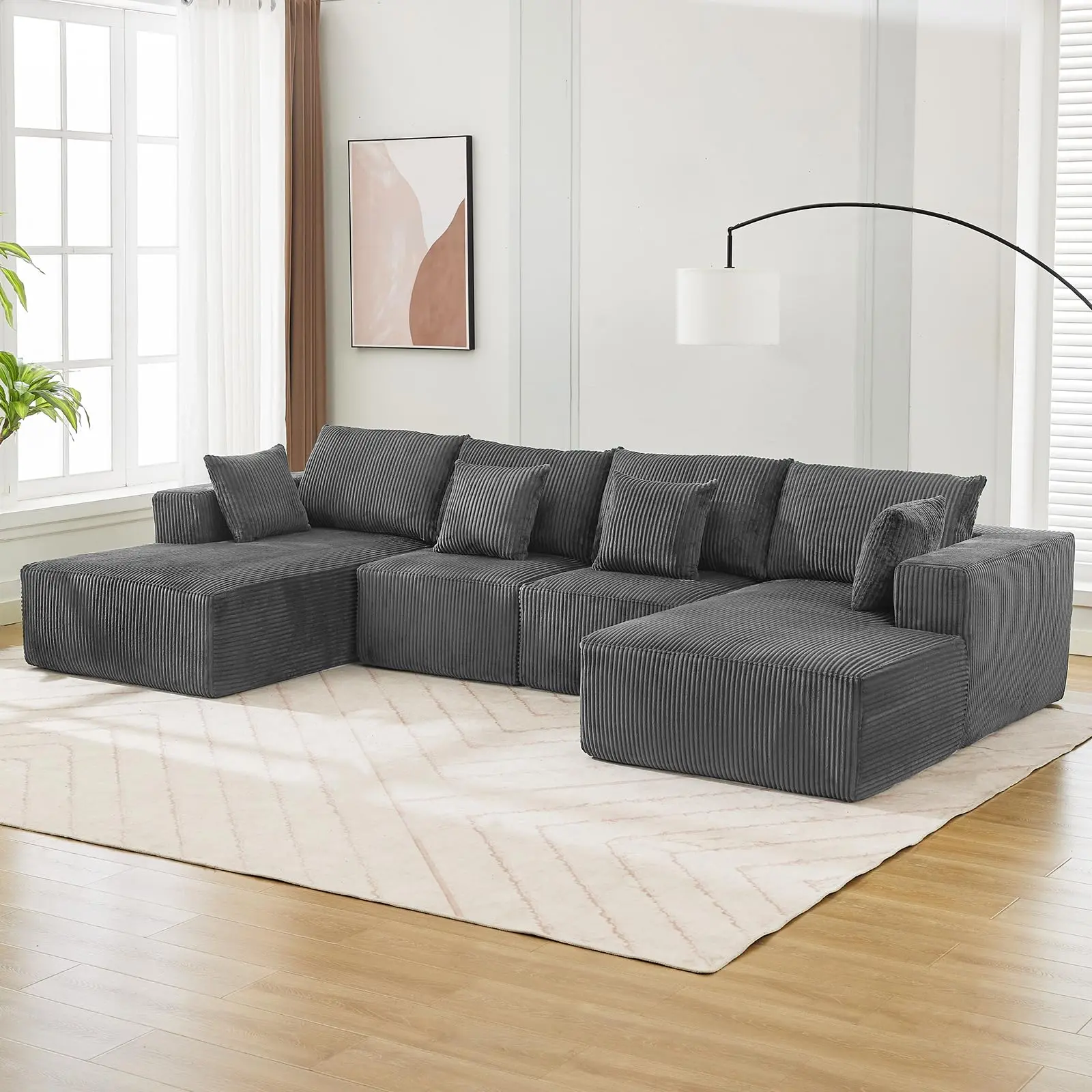 · Spacious U-Shaped Sectional Cloud Couch: This U-Shaped Sectional Sofa is spacious enough to accommodate at least 4 people, making it perfect for gatherings, movie nights, or just relaxing. The included matching pillows make it perfect for any living room or small space.