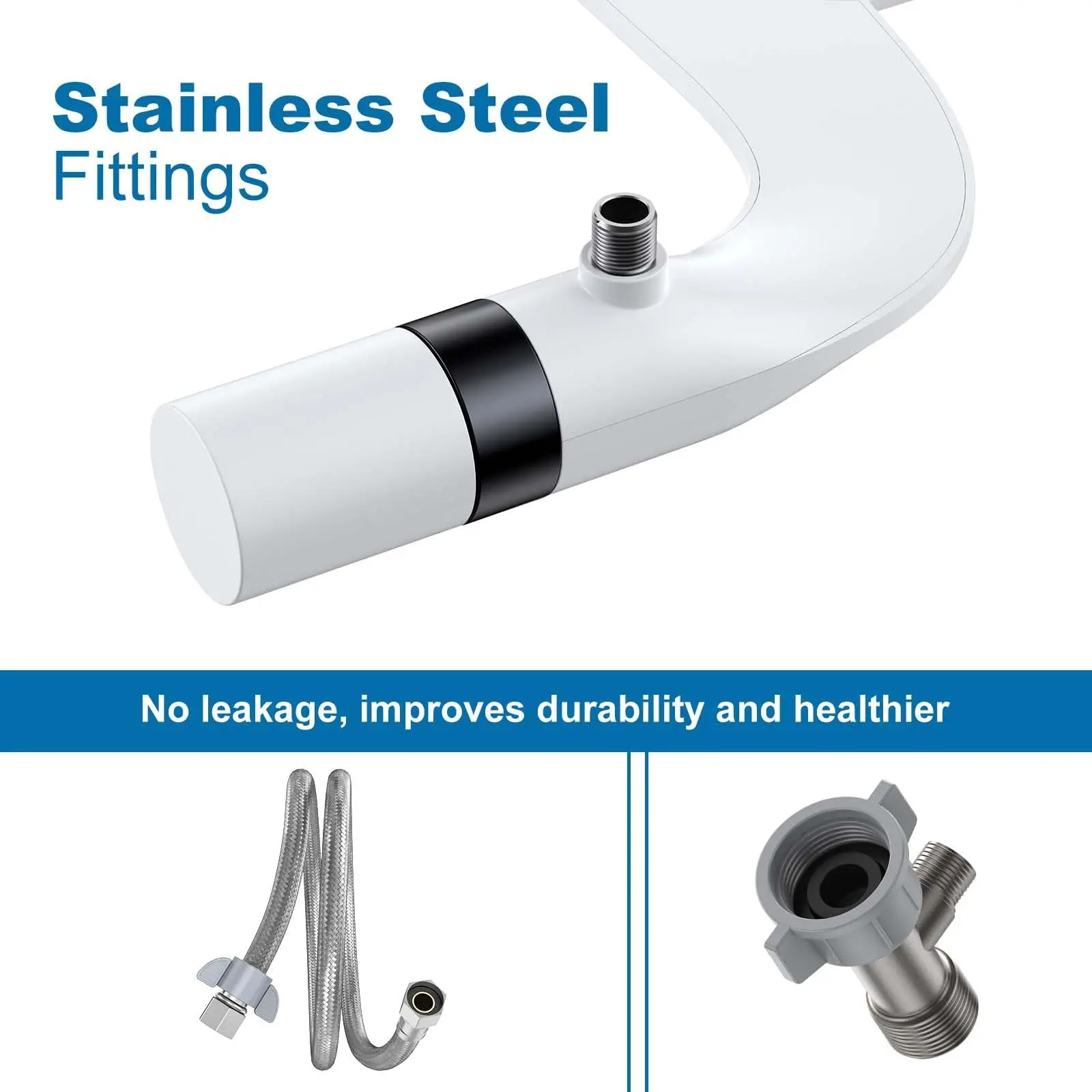 · Built with a premium brass water inlet, corrosion-resistant valves, and a reinforced stainless steel braided hose, this bidet ensures leak-proof durability and long-term reliability. By reducing toilet paper use, it promotes a cleaner feel while cutting waste, saving money, and supporting eco-friendly living.