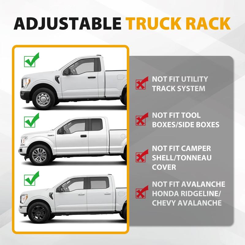 · NOTE: ①NOT FIT Utility Track System. ②NOT FIT Tool Boxes/Side Boxes. ③NOT FIT Camper Shell/Tonneau Cover. ④NOT FIT Ridgeline(Please check your model before purchasing)