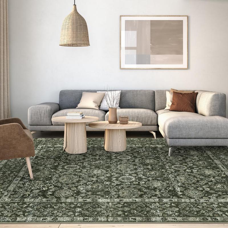 · Attractive Design: Featuring a distinctive floral pattern in shades of beige, grey-blue, dark green, and light green, this retro rug adds timeless style. It complements a range of color schemes and enhances any living area with its classic appeal.