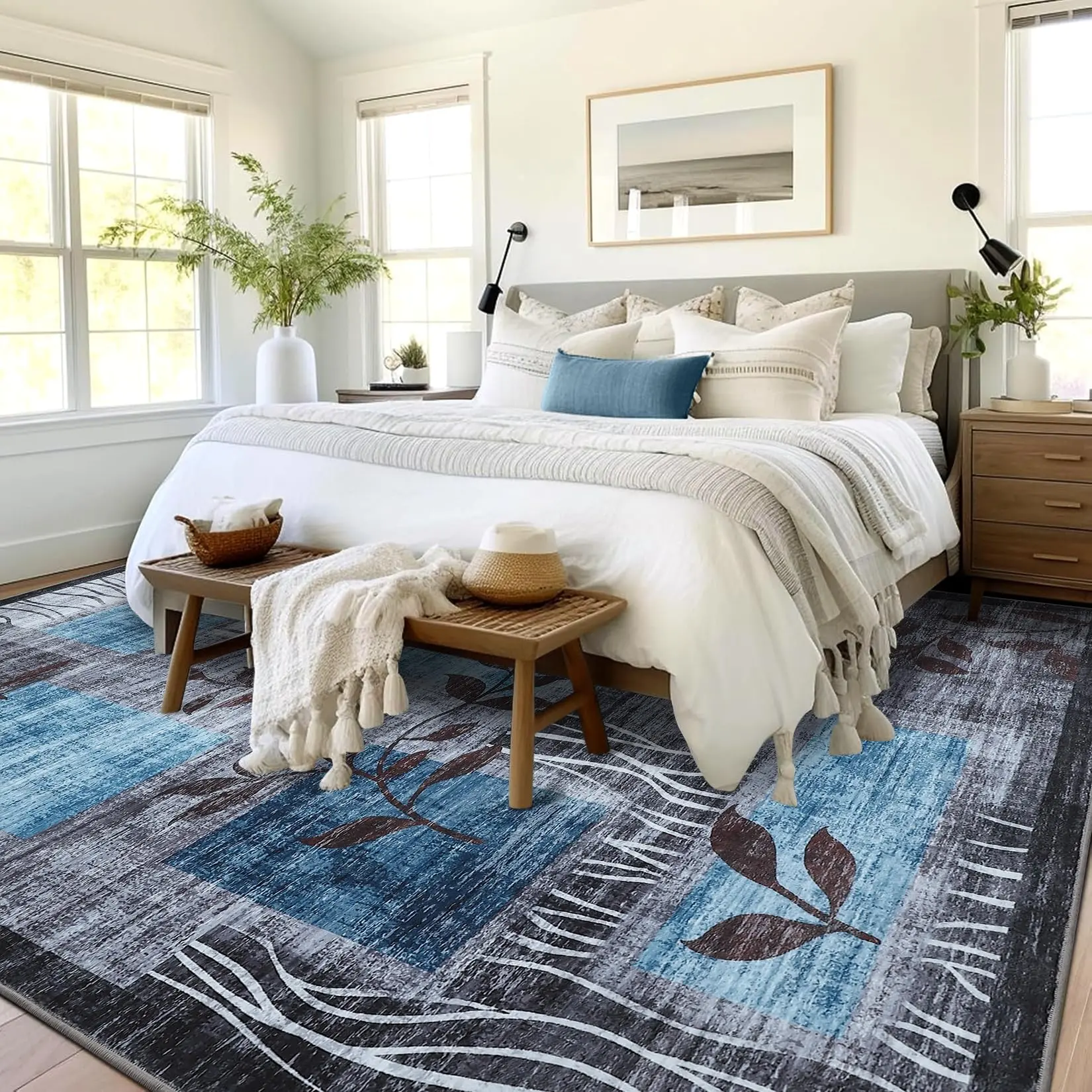 · 【Geometric Printed Area Rug】- Our geometric rugs boast an array of captivating patterns that beckon your artistic sensibilities. Enhance your living space with the trendy modern floral patterns of this area rug. Its classic yet chic design adds a touch of character and charm, making it a stylish focal point in any room. Our modern neutral rug is perfect as living room rug, bedroom rug, hallway rug, kitchen rug, kids room rug, dining room rug or home office rug