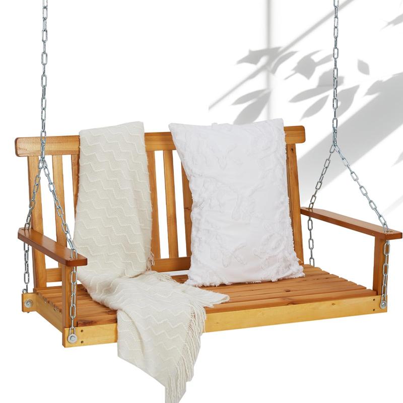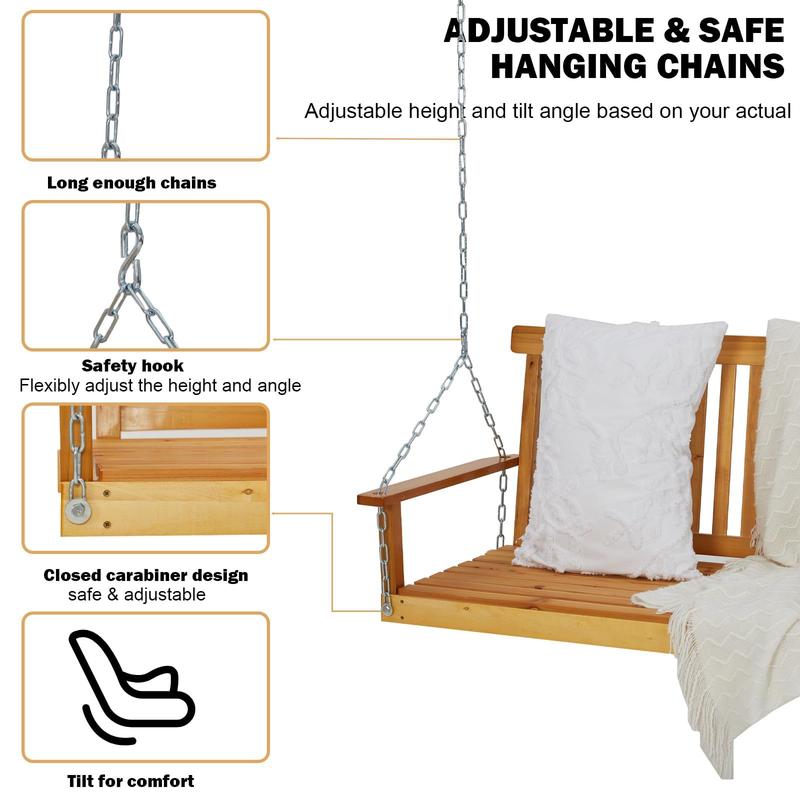 · Sturdy & Supportive: Crafted from solid fir wood with thick slats and galvanized steel chains, supporting up to 440 lbs, ideal for two people to enjoy comfortably.