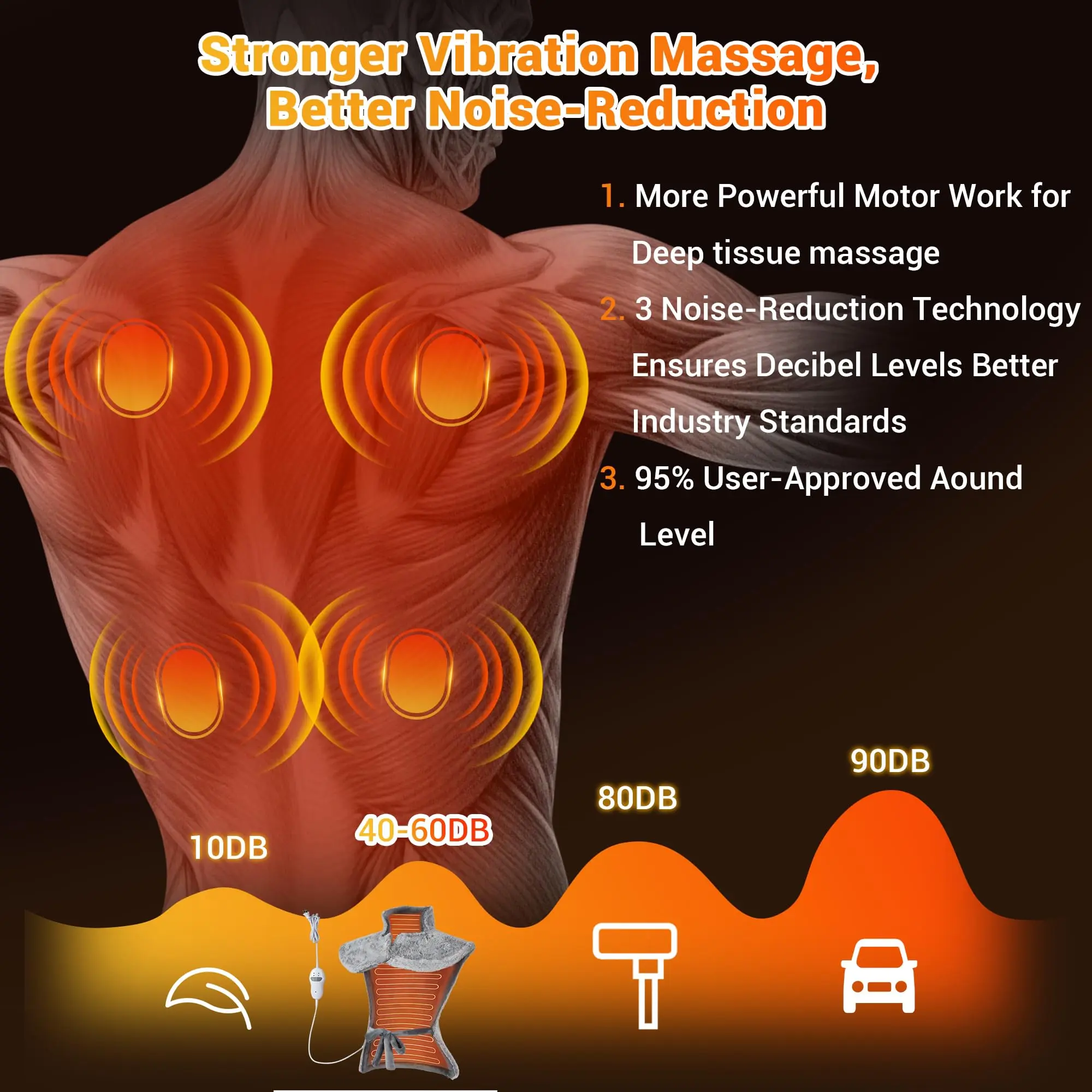 · 【Safe & Energy Efficient】Equipped with overheat protection, this ETL-certified heating pad offers up to 30 minutes of massage and automatically shuts off after 2 hours of use, ensuring both safety and energy savings.