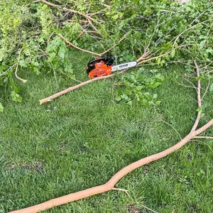For the money this little saw is freaking awesome top handle makes easy to use by no means is it a stihl or an echo but for 85 bucks? It’s a kick ass little saw wish I bought two