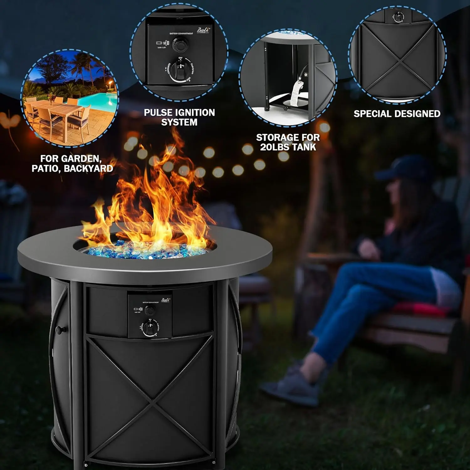 Functional Design: The BALI OUTDOORS fire pit table combines elegant looks with practical features, including a base with space to store a 20 lbs propane tank (not included), offering warmth and comfort on cozy evenings.